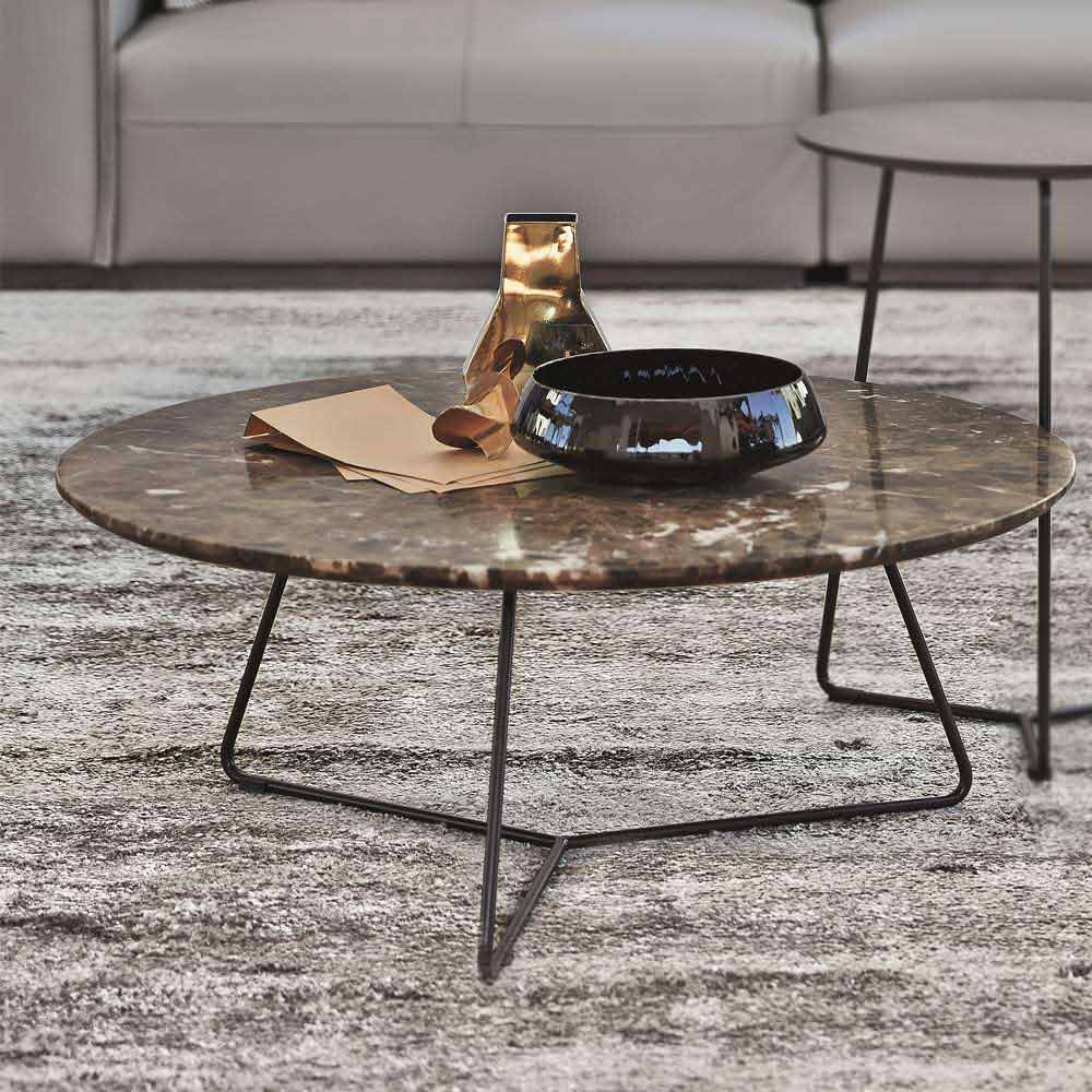 Runder Couchtisch aus Metall mit Marmorplatte Made in Italy, hohe Qualität.