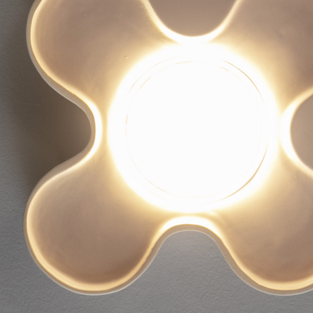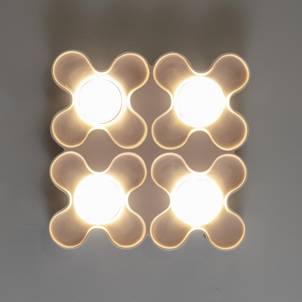 Weiße Keramik- Deckenleuchte mit farbigem Innenraum und Aluminiumkomponenten, die in Italien durch eine