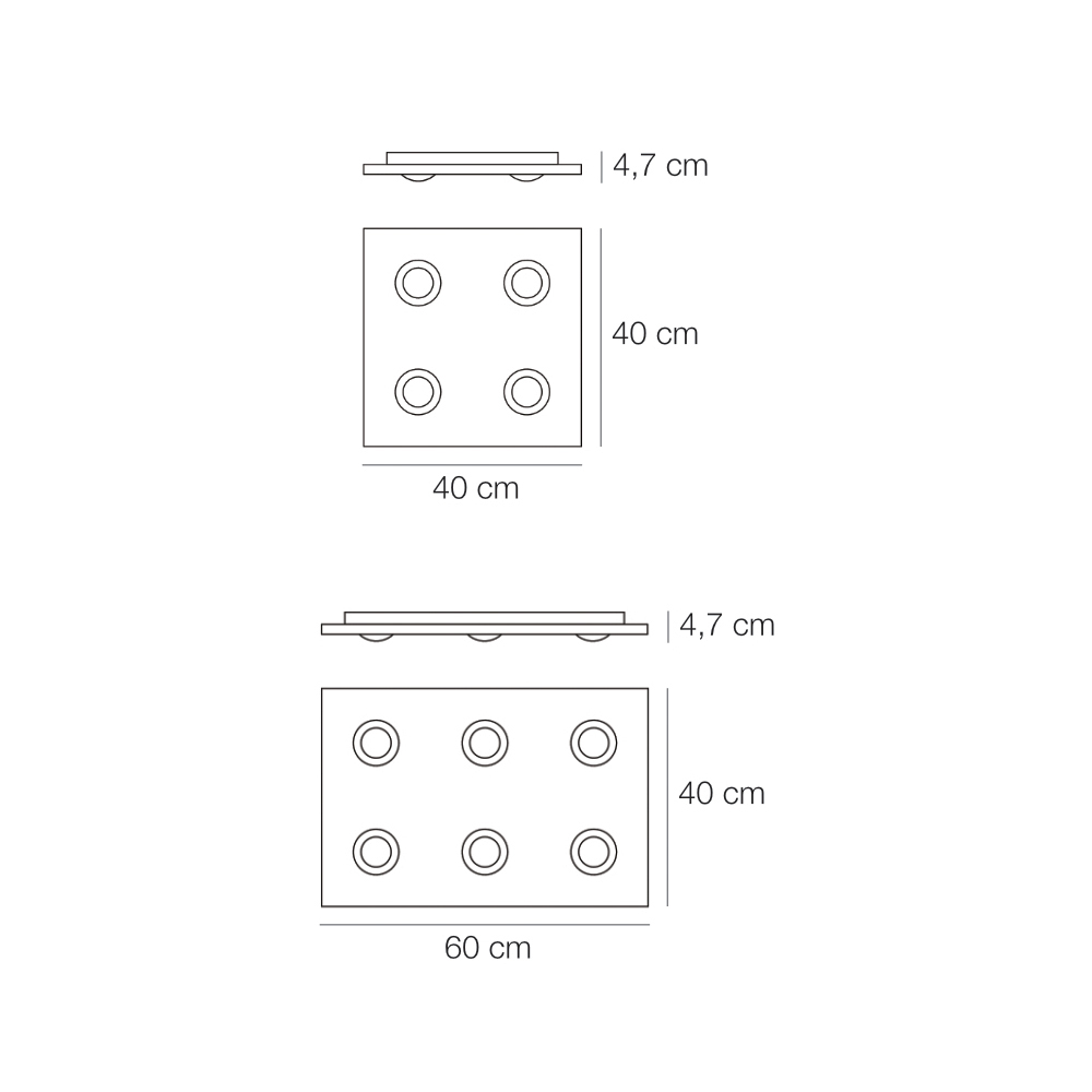 • Länge 40 cm x Tiefe 4,7 cm x Höhe 40 cm - 4-flammig - dimmbar