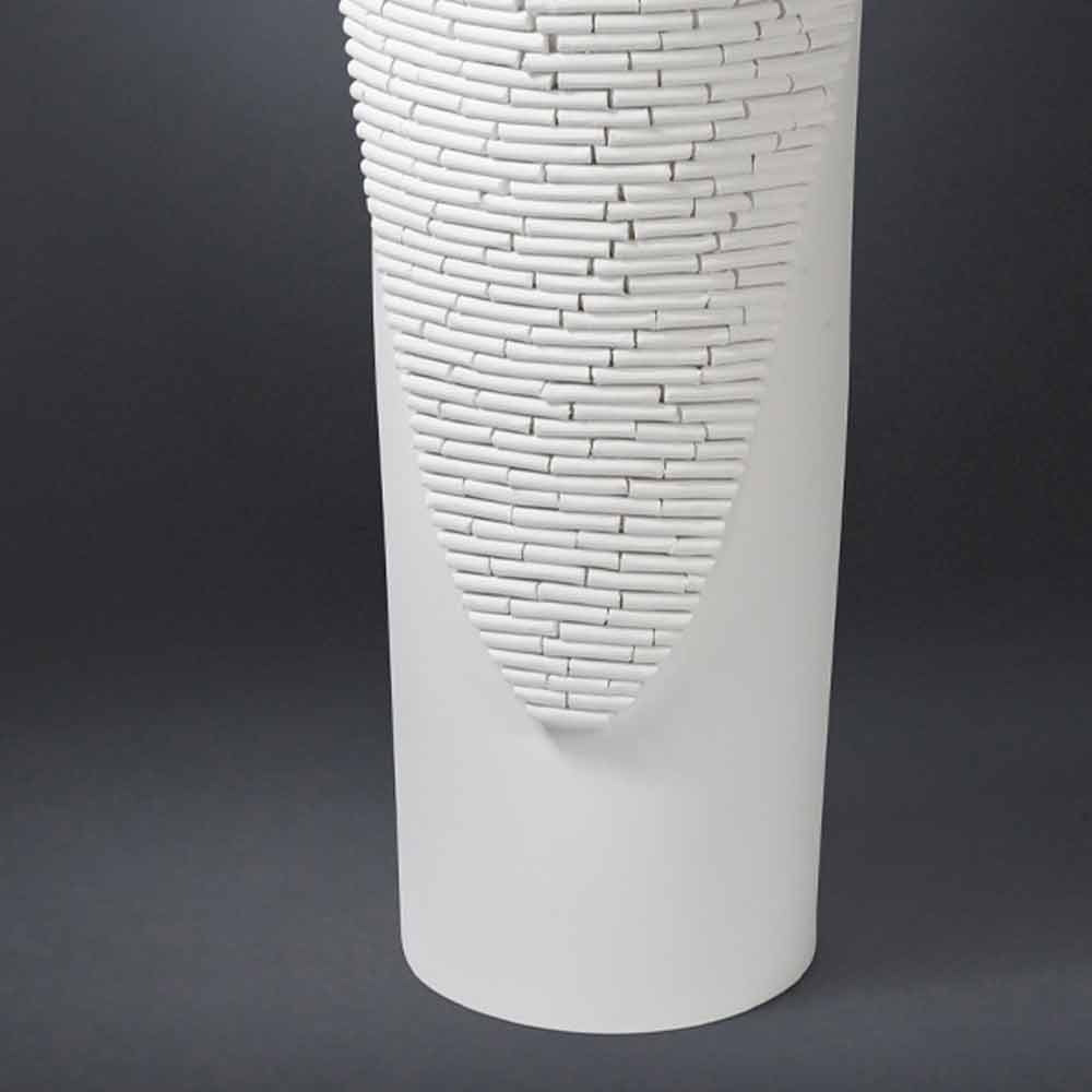 Hohe dekorative Vase aus mattweißer Keramik, handgefertigt in Italien.