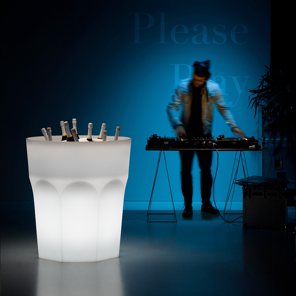Diese dekorative Vase ist die ideale Lösung, um Design und Funktionalität in einem einzigen Produkt zu kombinieren, dank der besonderen Glasform, die sie zusammen mit dem LED-Licht, das sie beleuchtet, in ihrer Art einzigartig macht und es Ihnen ermöglicht, jeden Außenbereich mit Geschmack und Geschmack auszustatten Persönlichkeit, die gleichzeitig den Raum beleuchtet, in dem sie sich befindet. Der Artikel wird vollständig in Italien aus Polyethylen hergestellt und zeichnet sich durch hervorragende Beständigkeit gegen Sonne, Stöße und Hitze aus. Dieses Produkt wurde als einfache dekorative Vase für mittelgroße / große Pflanzen geboren und eignet sich auch ideal für Partys oder Veranstaltungen im Freien, bei denen Flaschen mit Eis gekühlt werden. Enthält ein Kaltlicht-LED-Kit mit einer 20-W-Lampe der Klasse A, einer Polycarbonatschale, einem 280 cm langen schwarzen Kabel und einem spritzwassergeschützten Stecker.