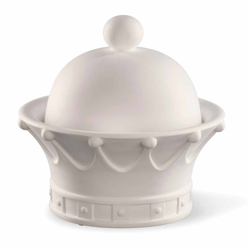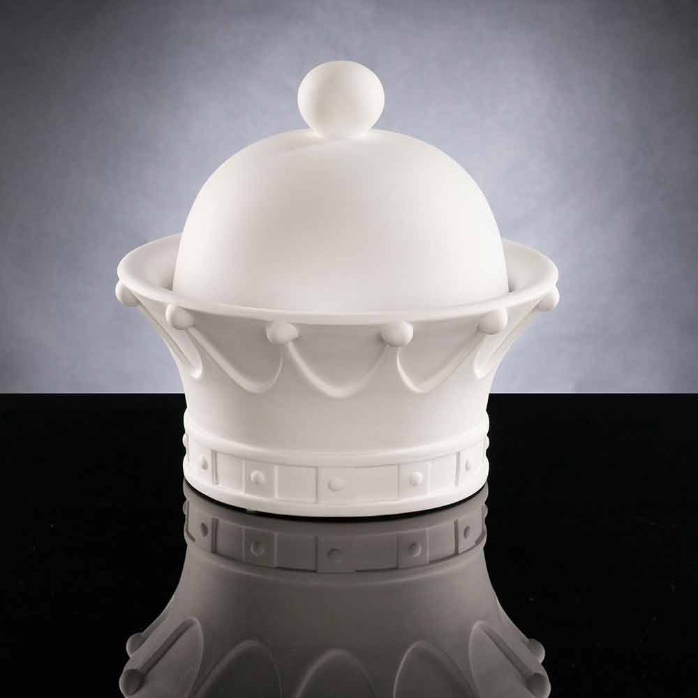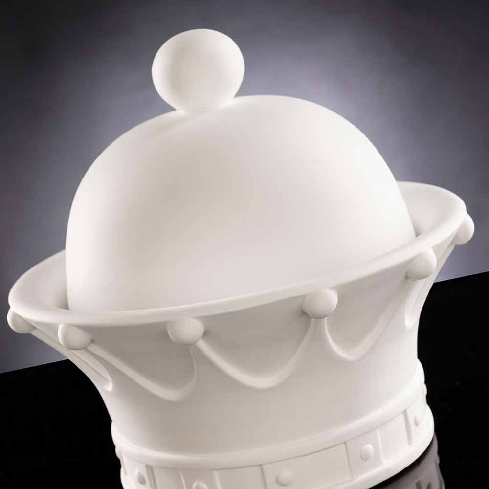 Dekoratives Ornament in Form einer sich öffnenden Königinkrone, handgefertigt in Italien aus weißer Keramik . Ein exzentrisches und elegantes Ornament, das gleichzeitig die umgebende Einrichtung vervollständigt, indem es eine wunderbare Harmonie schafft, die Modernität und Design verkörpert. Seine originelle und kreative Form ist ideal für diejenigen, die es lieben, ihre Wohnräume mit Elementen zu bereichern, die sich durch eine originelle und einzigartige Seele auszeichnen, während sie dank des praktischen Fachs unter dem Deckel wenig Platz zum Packen und Ordnen von Gegenständen bietet.