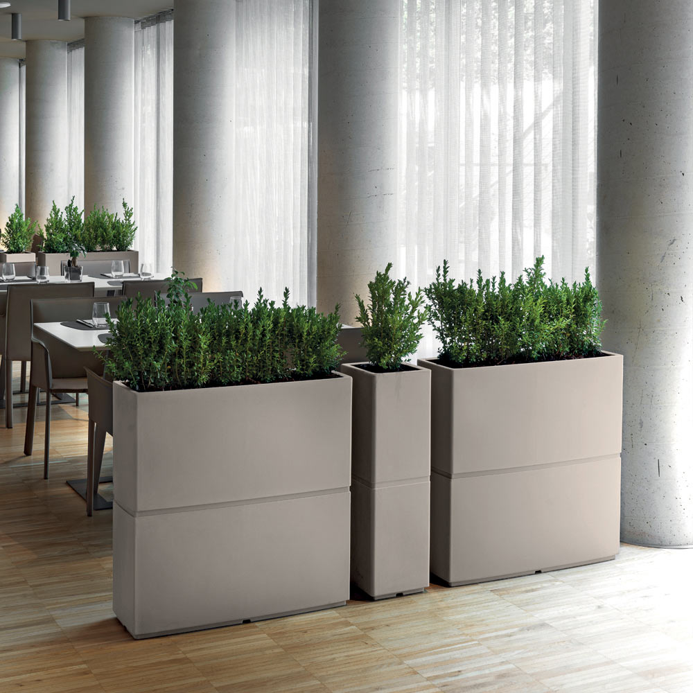 Die besondere Rechteck- oder Säulenform ermöglicht eine vielseitige und funktionale Nutzung dieses Produkts, um Pflanzen und Blumen auf dekorative Weise unterzubringen und der Umgebung einen gewissen aufgeräumten Stil zu verleihen.