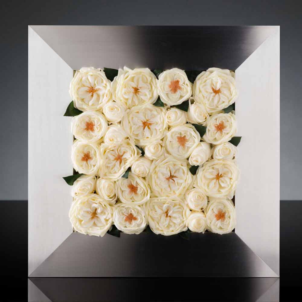 Modernes Wandbild made in Italy aus verchromtem Metall und künstlichen weißen Rosen . Eine Möbelidee, die aus der ungewöhnlichen Begegnung von Naturschönheiten und modernem Design entsteht und den Charme beider Welten auf exklusive Weise unterstreicht. Entstanden ist eine dekorative Ergänzung mit einer raffinierten Seele, die durch ihre extreme Vielseitigkeit und ihren raffinierten Minimalismus jede Wohn- oder Objektumgebung mit einem zeitgenössischen Stil ausstattet und füllt. Ideal, um den Wänden Ihres Hauses ein Gefühl von Dreidimensionalität zu verleihen, spielt dieses Paneel eine grundlegende Rolle, indem es dank seiner originellen und kreativen Seele jede Aufmerksamkeit auf sich zieht, die den Geist in eine grüne Landschaft bringt, die Frieden und Ruhe verleiht