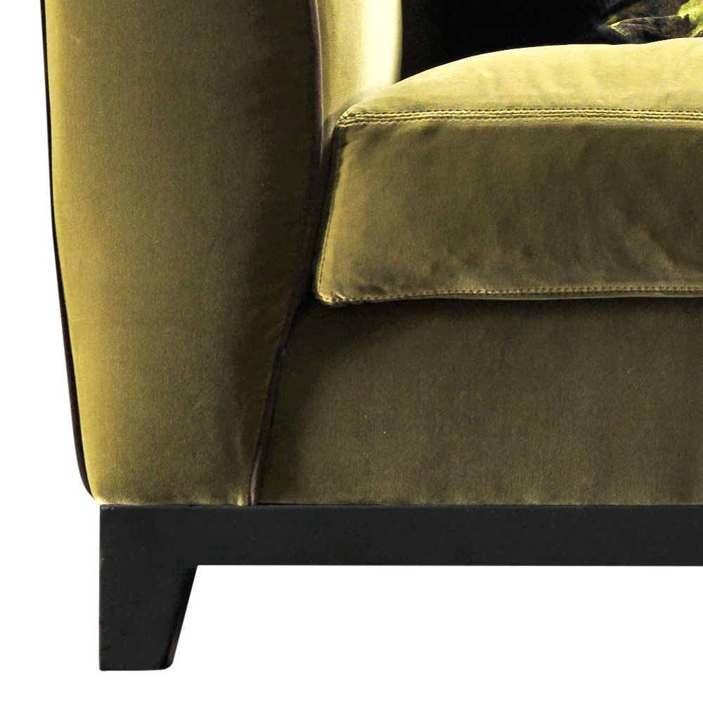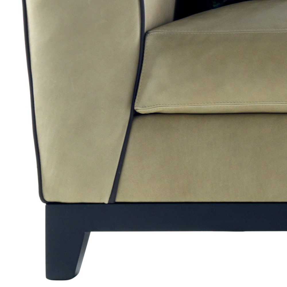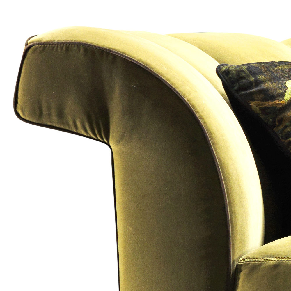 Handgefertigt in Italien mit einer Struktur (Basis, Rücken und Arme) aus massivem Buchenholz; Polsterung aus Polyurethanschaum mit unterschiedlicher Dichte, Sitzkissen aus Gänsedaunen mit flexiblem Polyurethaneinsatz. Der Bezug kann nur entfernt werden, wenn der Stoffbezug ausgewählt wird.
