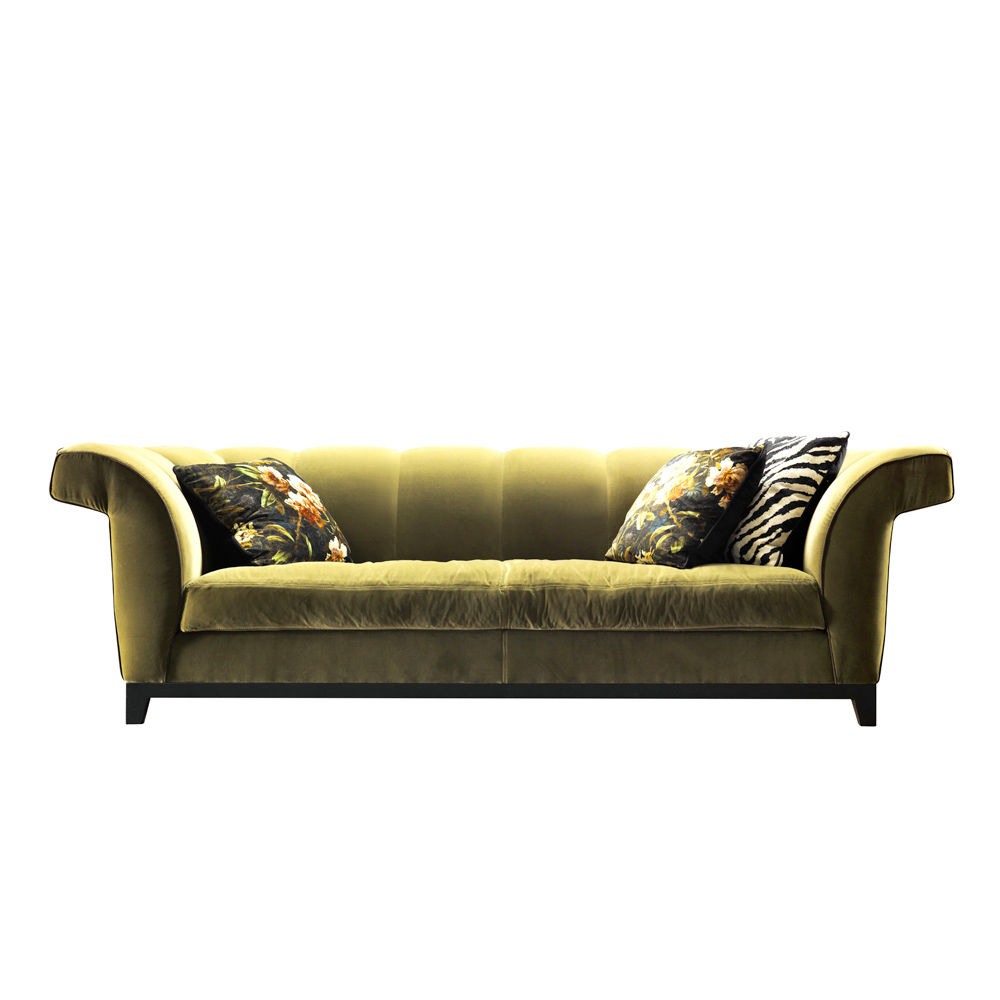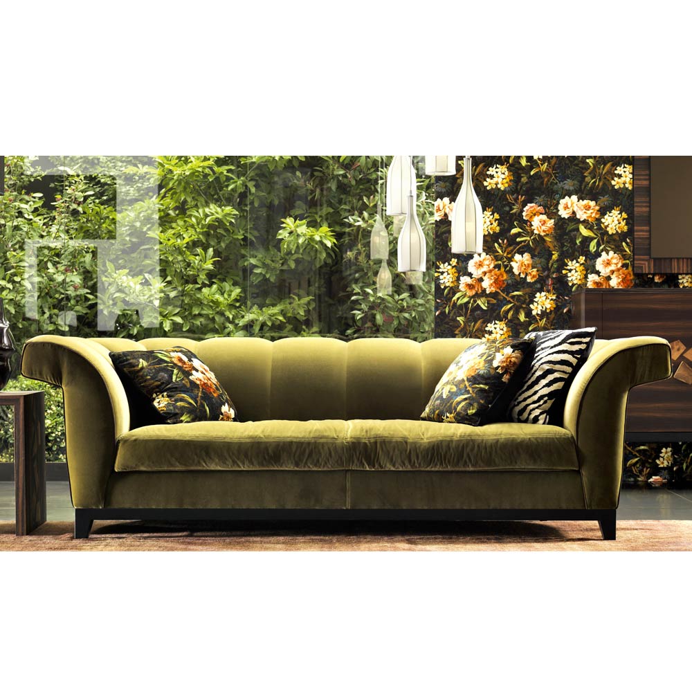 3-Sitzer Design gepolstertes Sofa, handgefertigt in Italien Grilli Shell Das Shell-Sofa zeichnet sich durch ein raffiniertes Design mit Charme aus, mit dem es in eine Kollektion aufgenommen werden kann, die für ein internationales Publikum entworfen wurde. Die Möglichkeit, den Bezug zwischen Stoff und Leder zu wählen, ist eine ihrer Besonderheiten, die dem Sofa und der Umgebung mehr Eleganz und Charme verleiht.