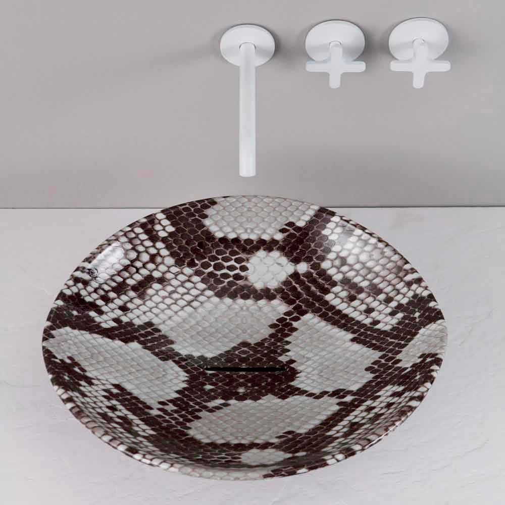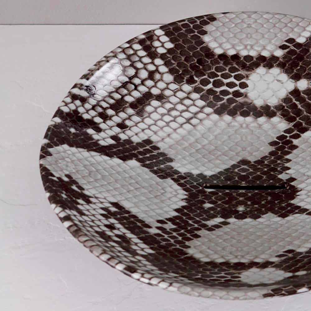 Cobrate Keramik-Aufsatzwaschbecken made Italy Animals Unregelmäßig geformter Waschtisch oder "Becken", der an eine Mandelform erinnert, ausgestattet mit einem durchgehenden Wasserablauf. Dieses Waschbecken kann individuell angepasst werden, indem Sie zwischen verschiedenen Ausführungen und Dekorationen wählen: Um Informationen und / oder ein persönliches Angebot anzufordern, schreiben Sie an clienti@viadurini.it.