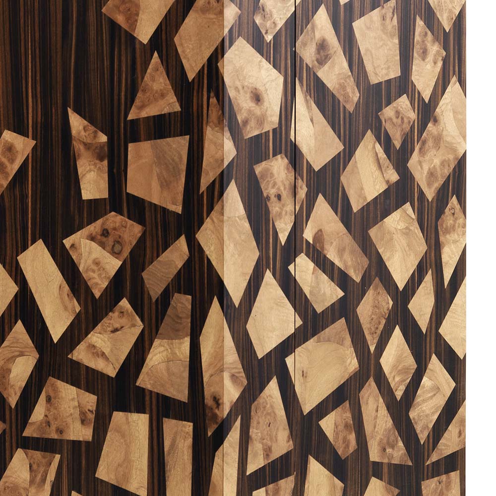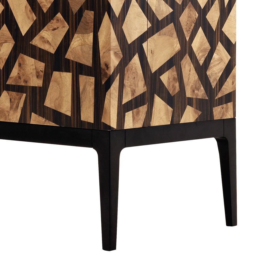 Die zweitürige Zarafa-Kabinettbar zeichnet sich durch ihre elegante und raffinierte Formensprache aus. Die geometrischen Linien erinnern an den Mantel einer berühmten Giraffe, die dem König von Frankreich im 19. Jahrhundert geschenkt wurde.