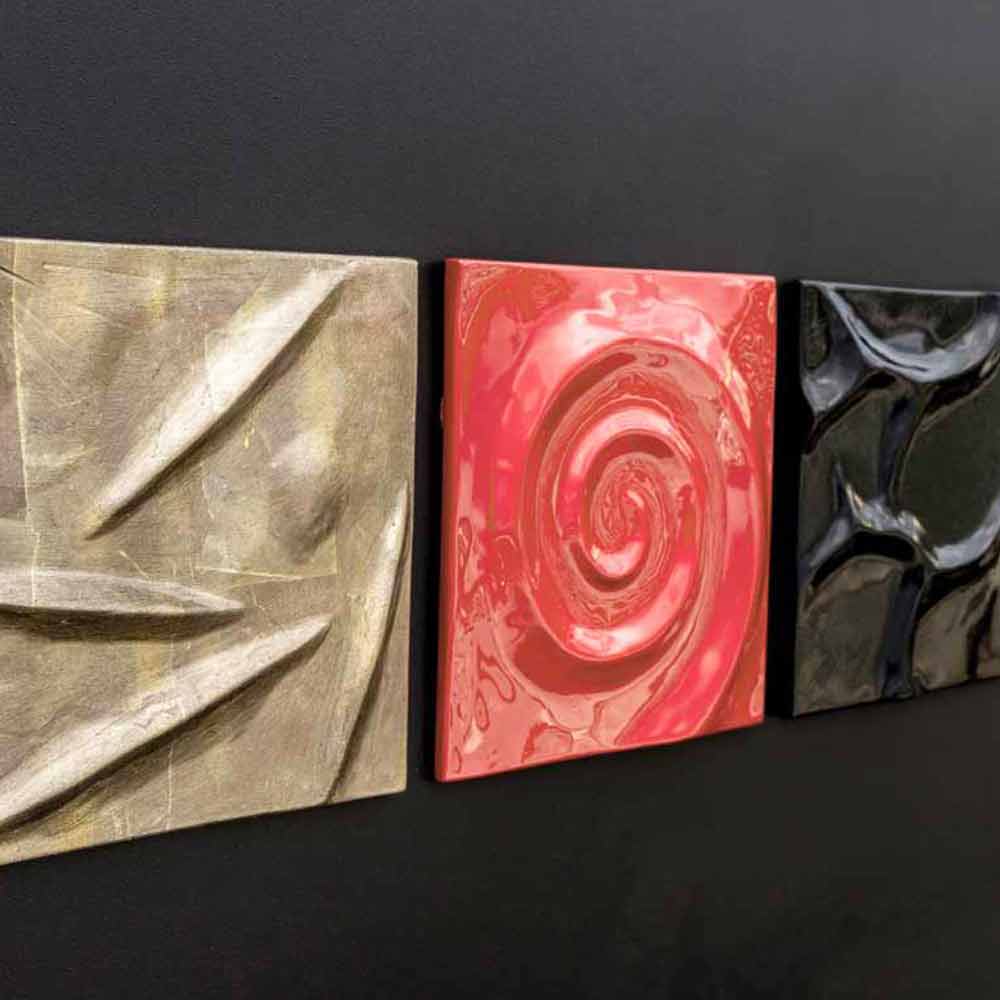 5 Elemente aus Keramik-Verbundstoff , handdekoriert mit Blattsilber und Blei.