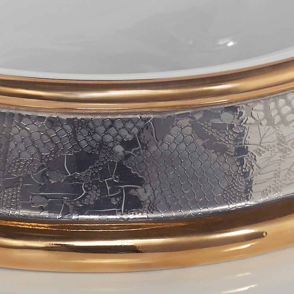 Halbeinbauwaschbecken komplett in Italien realisiert handgefertigt aus Fire Clay mit Platinband und 24 Karat Ringen.