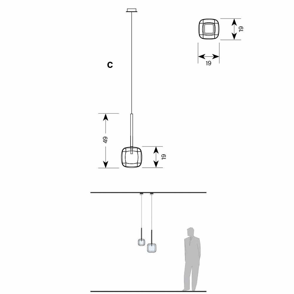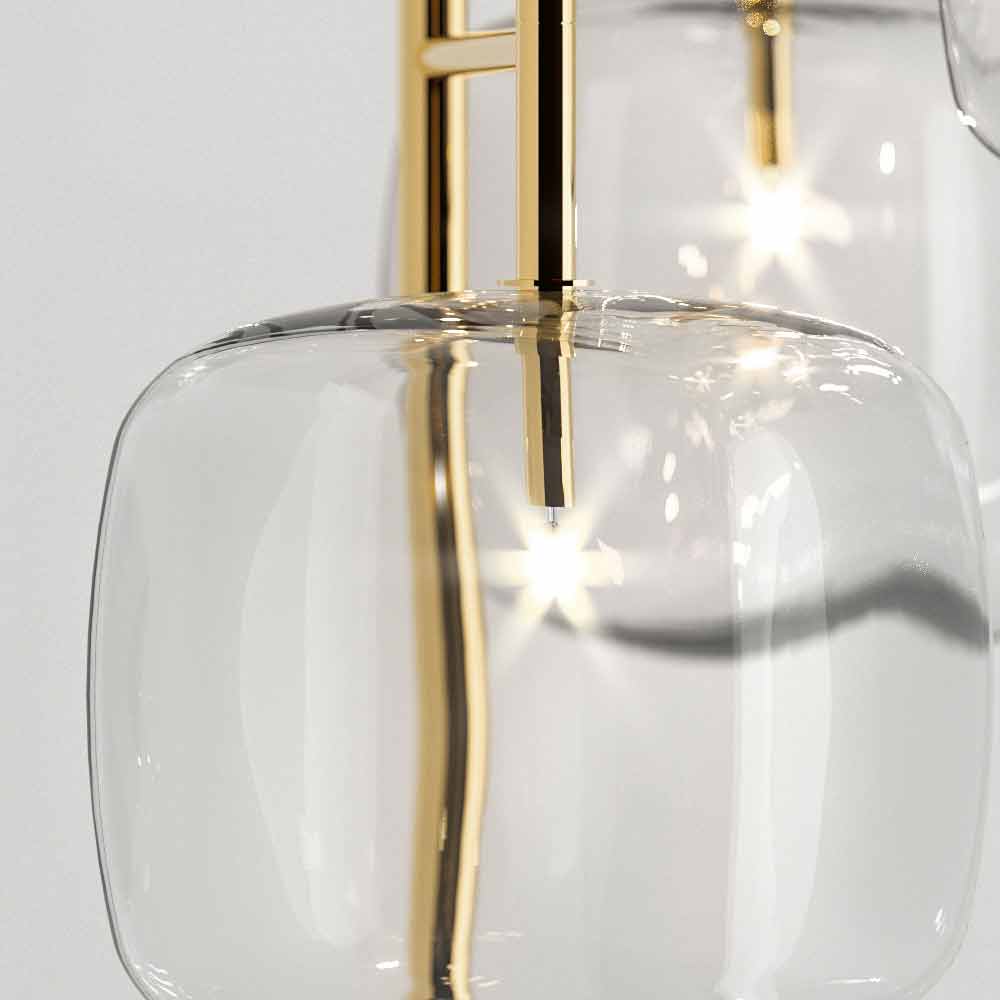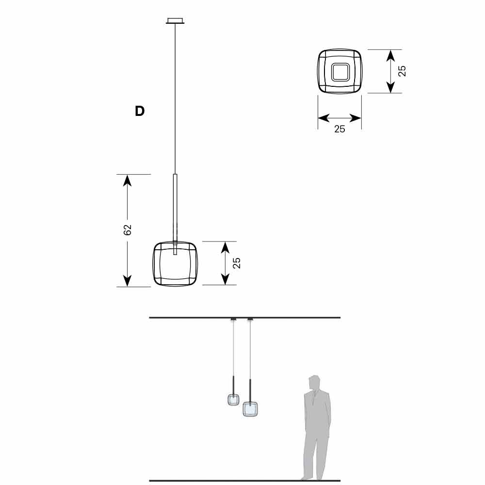 Diese Hängelampe wird in Italien hergestellt und repräsentiert eine äußerst elegante und wirkungsvolle Beleuchtungsidee, die dazu beiträgt, eine Umgebung mit einer raffinierten und modernen Atmosphäre zu schaffen. Die polierte Metallstruktur enthält einen abgerundeten Würfel aus transparentem geblasenem Pyrexglas . Ideal für mehrere Installationen auch in unterschiedlichen Höhen, wodurch das Produktdesign bewegt und verfeinert wird . G4 3000K LED-Leuchte und dimmbare Lampe.