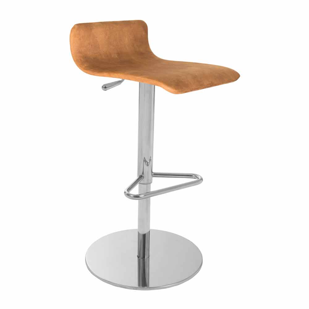 - runde Basis in verchromtem Finish und Sitz mit braunem Econabuk bezogen (Material ähnlich Wildlederhaut, sehr weich im Griff )