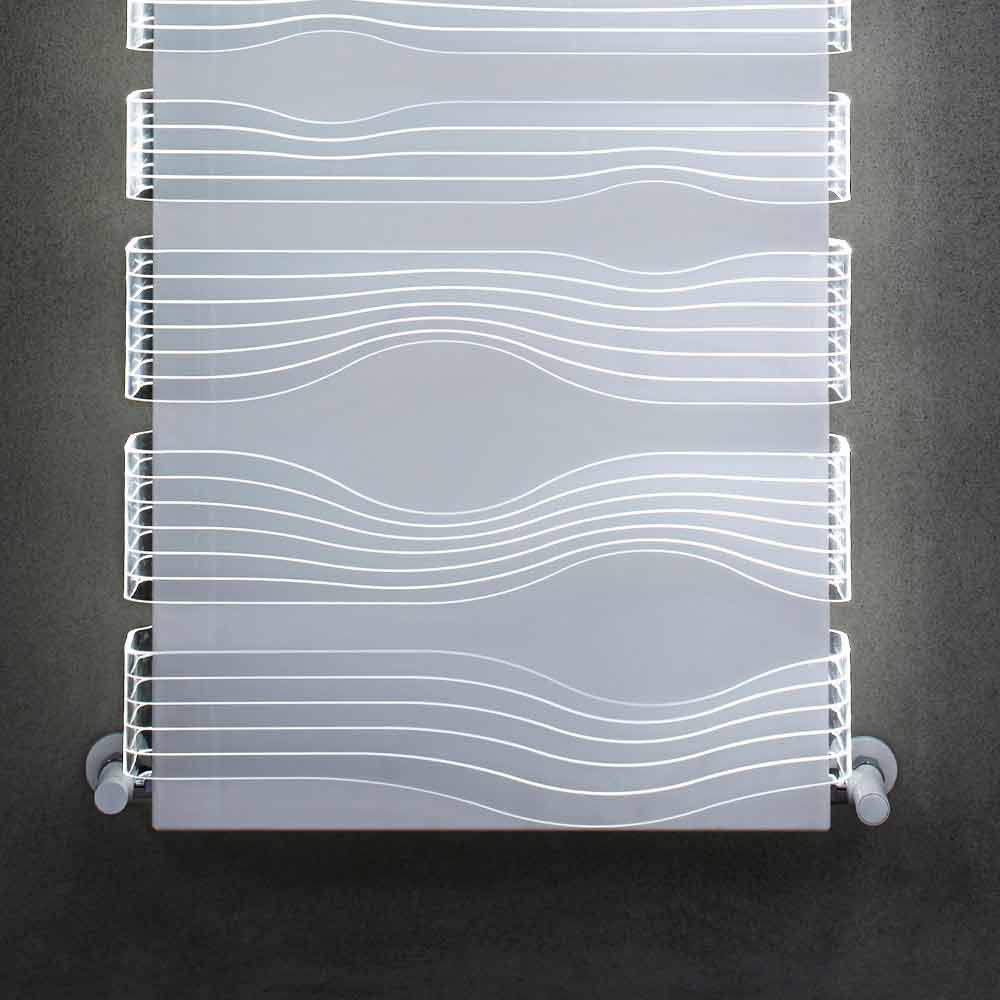 hydraulische Strahlungsplatte hat ein modernes und minimalistisches Design mit großem Charme, das Heizung und LED-Beleuchtung für eine suggestive und emotionale Atmosphäre kombiniert.