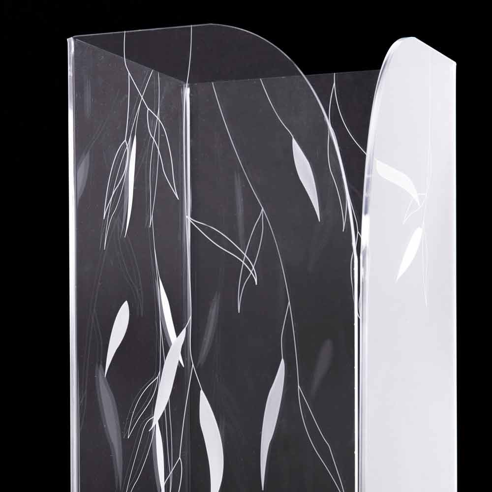 Schirmständer aus transparentem Kunststoff mit lasergravierten dekorativen Blättern, hergestellt in Italien Design.