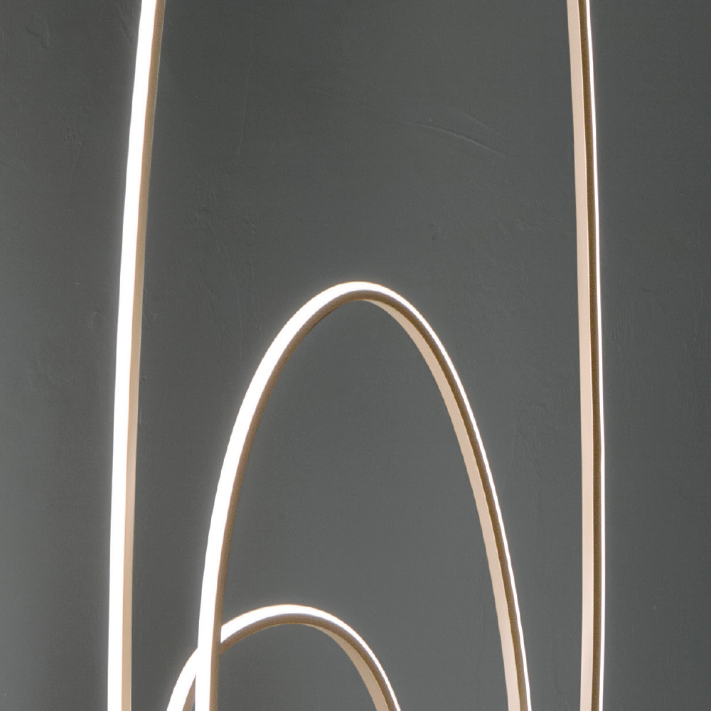 originellen und raffinierten Note auszustatten und zu beleuchten. Seine Struktur entwickelt sich in einem vertikalen Wirbel, der aus einer durchgehenden Linie besteht, die elliptische Kreise nachbildet, die eine besonders