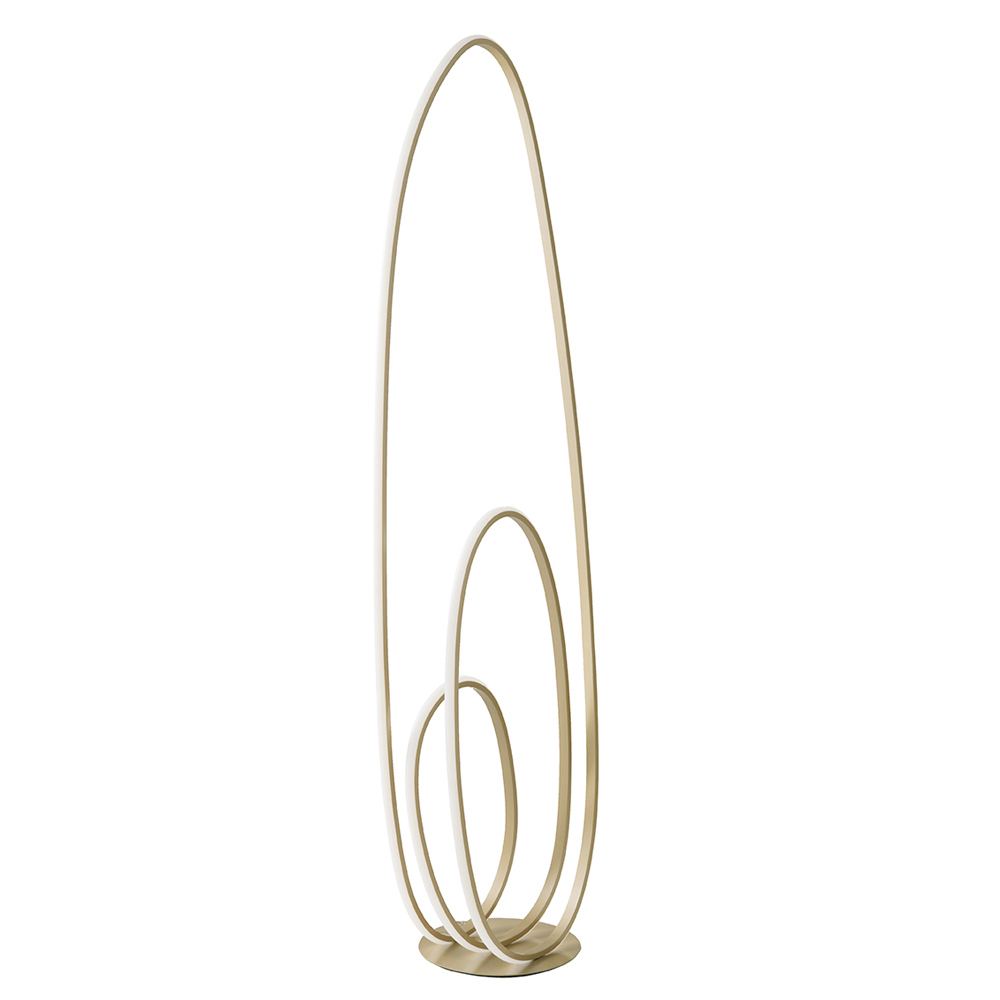 Stehlampe aus goldfarben lackiertem Metall, komplett mit LED-Licht.