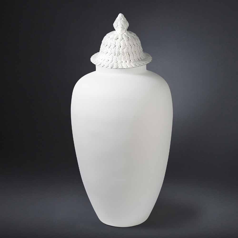Hohe dekorative Vase aus weißer Keramik, handgefertigt in Italien, hohe Qualität.