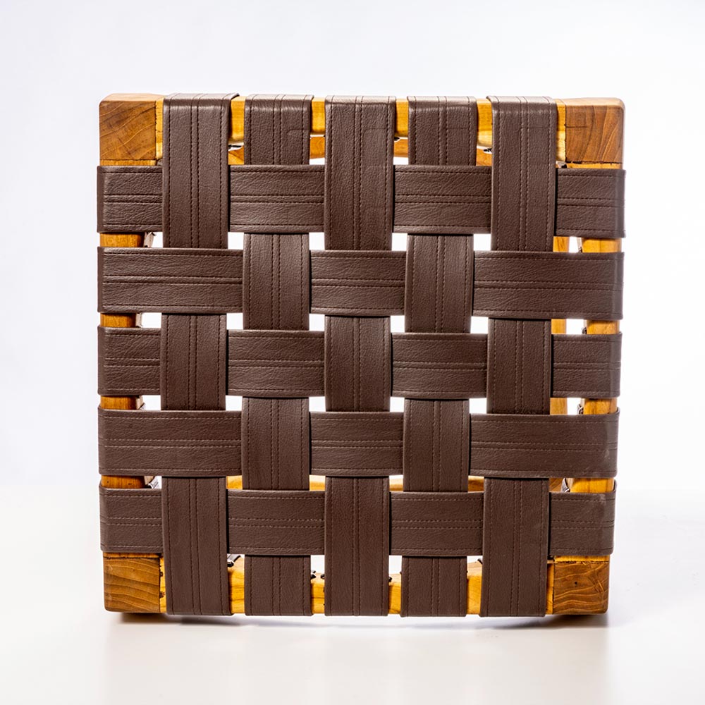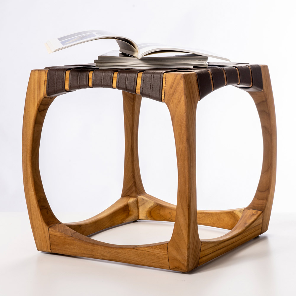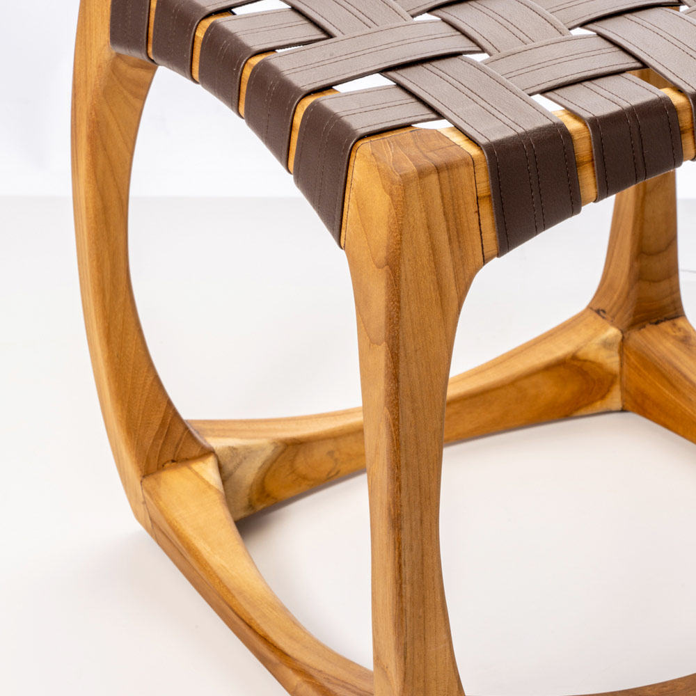 Designer-Badezimmerhocker aus Teakholz mit geflochtener Sitzfläche – Yucca