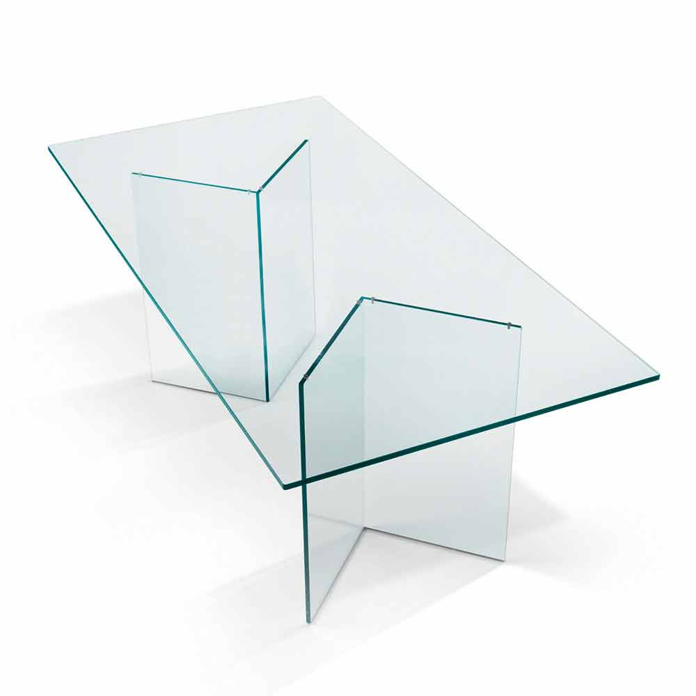 Rechteckiger Ess- oder Bürotisch aus extra klarem Glas, ein feines Produkt made in Italy.