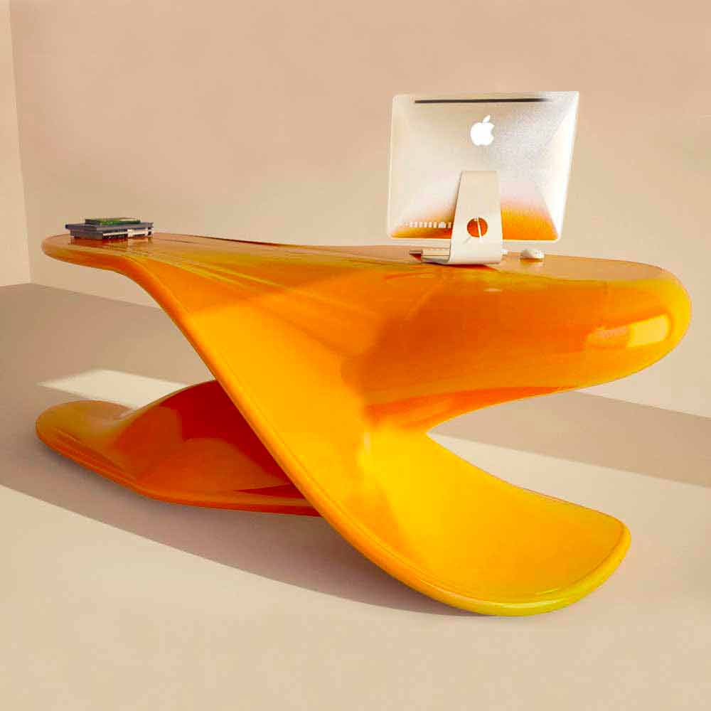 Top-Design-Schreibtisch. Material: feste Oberfläche; Das Thema des Archer-Büroschreibtisches wird als Materie im Raum interpretiert, was eine gewisse Dynamik im Büroraum suggeriert. Eine völlig neue Form, gekennzeichnet durch hohle und konkave Teile, hergestellt in 3 Farbvarianten, für einen modernen, aber stilvollen Bürovorschlag. Glänzend lackiertes Finish. Erhältlich in verschiedenen Farbvarianten.