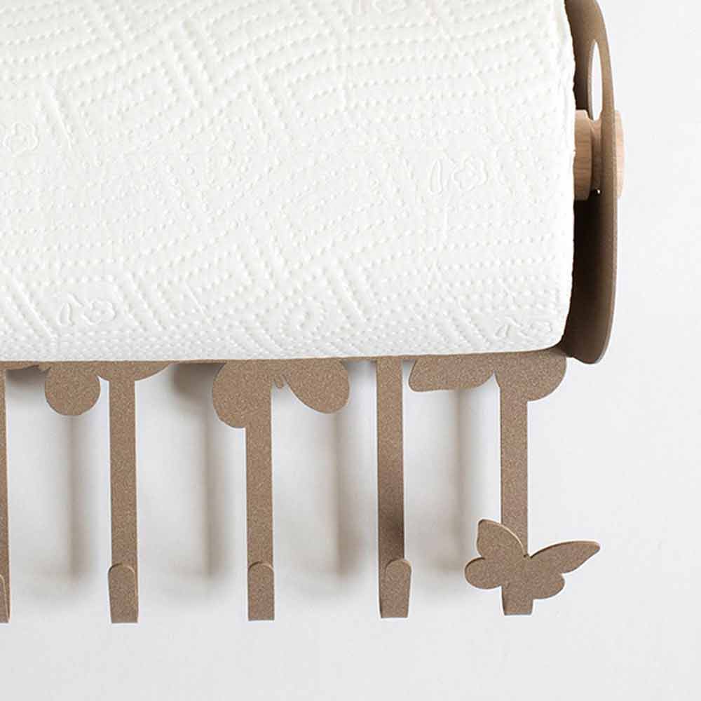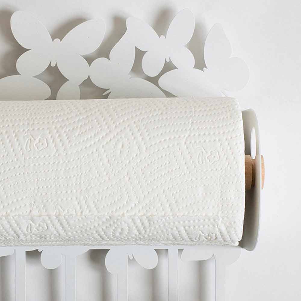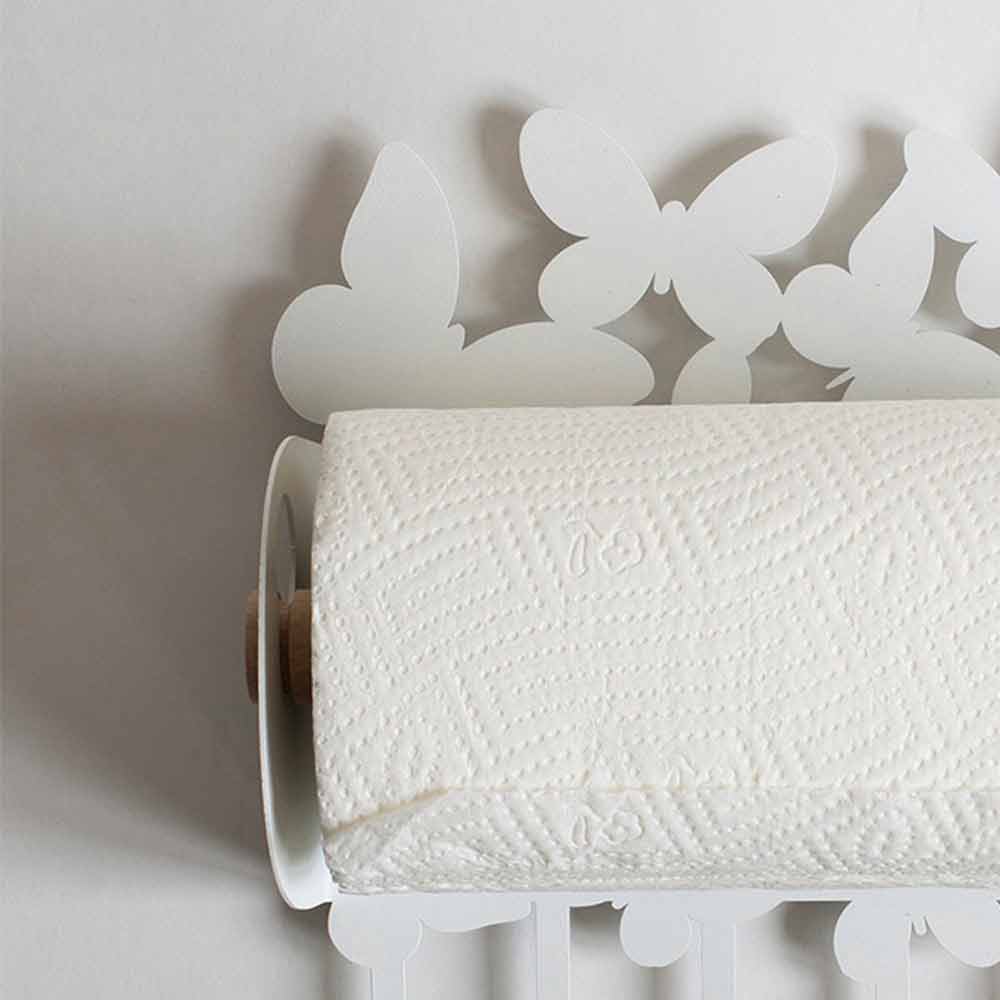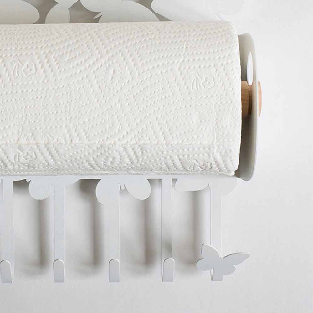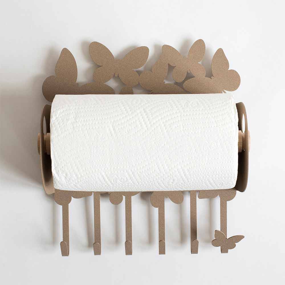 Moderner Küchenrollenhalter zur Wandmontage aus weißem oder beigefarbenem Eisen, handgefertigt in Italien.