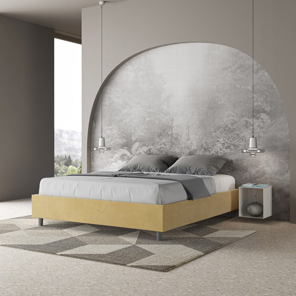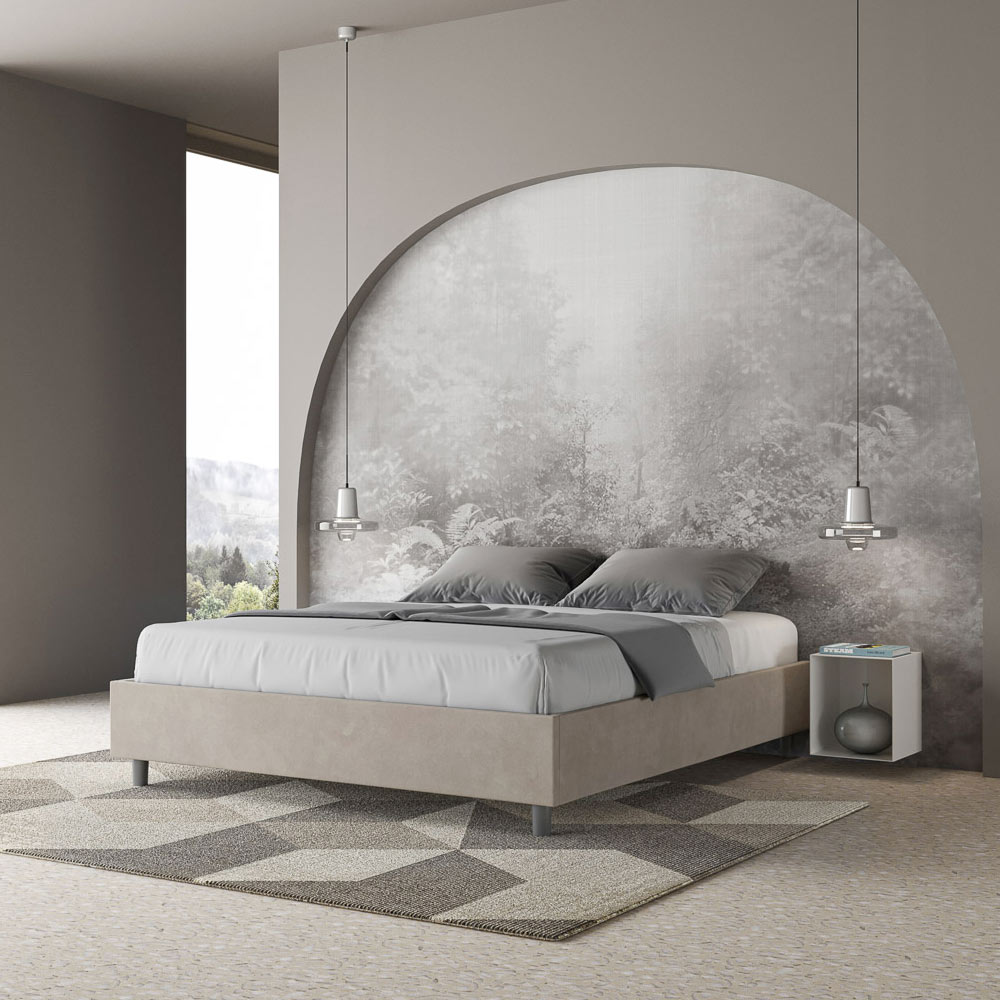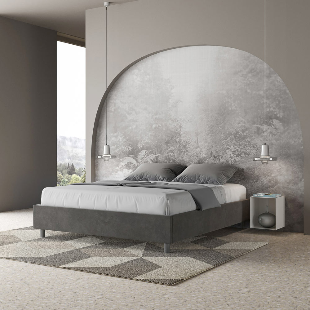Gepolstertes Doppelbett (160 x 200 cm) aus Spanplatten mit Mikrofaserbezug , vollständig Made in Italy. Dieses Doppelbett besticht durch sein klares, minimalistisches Design . Seine zurückhaltende Ästhetik und Vielseitigkeit ermöglichen eine mühelose Integration in jedes Ambiente. Ein besonderes Merkmal ist das Fehlen eines traditionellen Kopfteils . Dadurch eignet es sich ideal für die Platzierung an ungewöhnlichen Orten, beispielsweise unter einem Fenster, im Dachgeschoss oder in der Nähe einer dekorativen Wand, ohne die Aussicht zu beeinträchtigen oder den gewünschten Effekt zu erzielen.