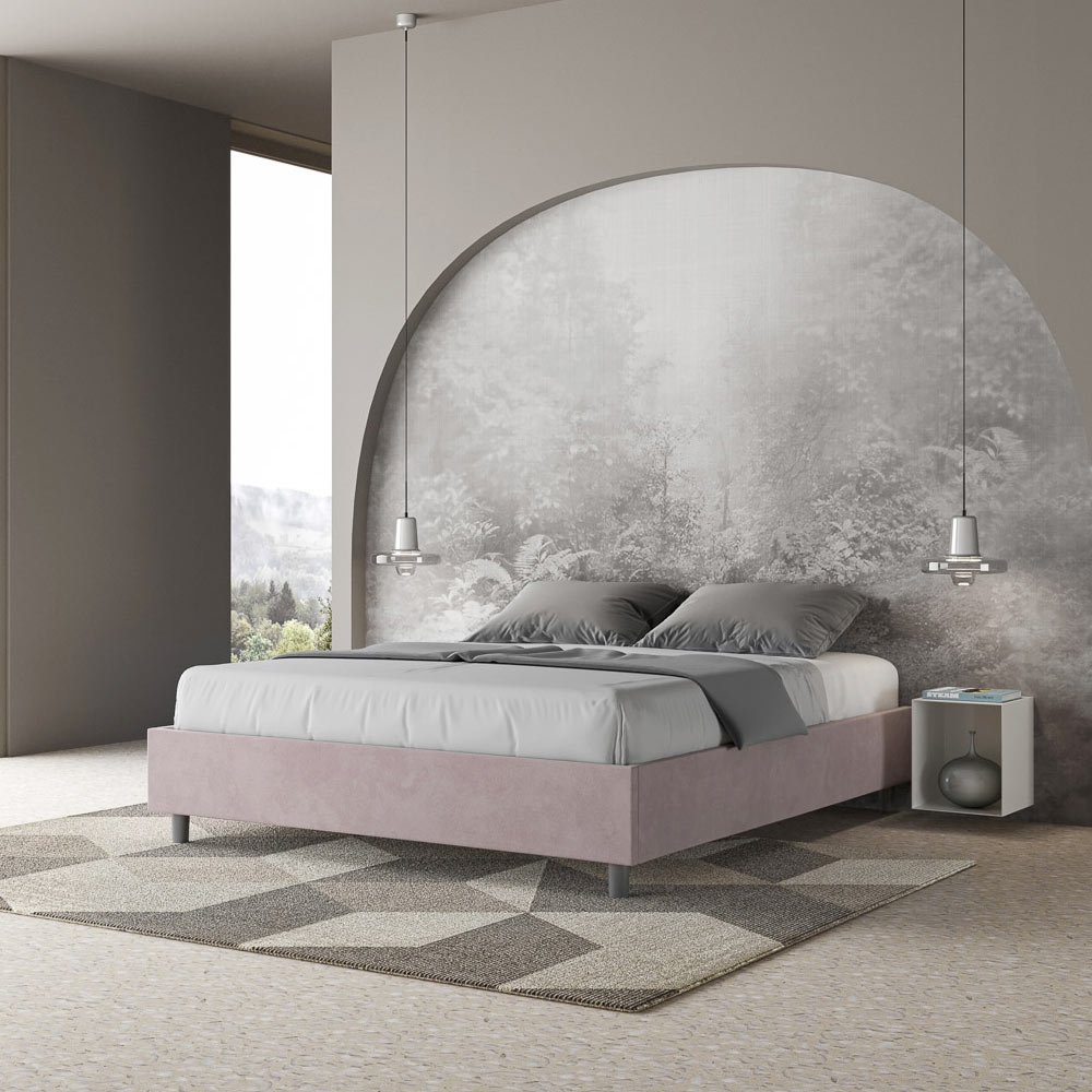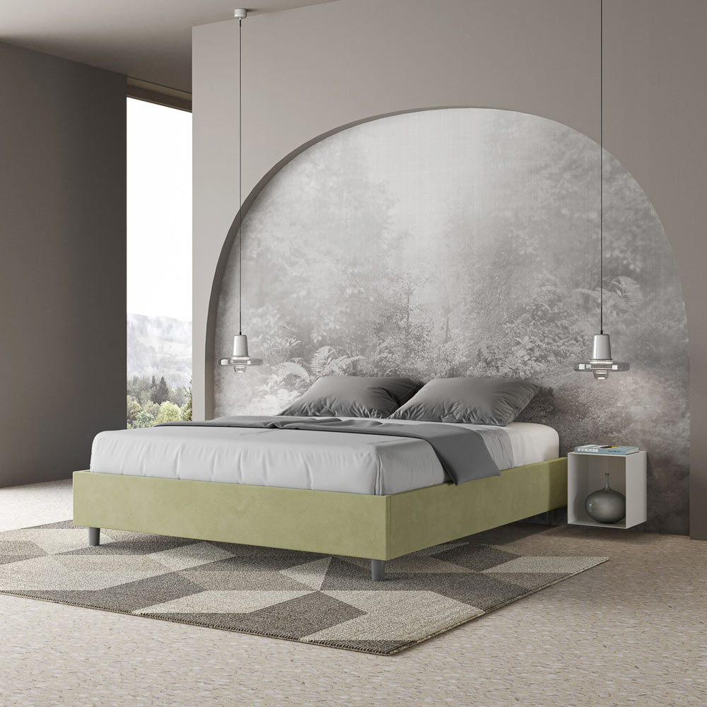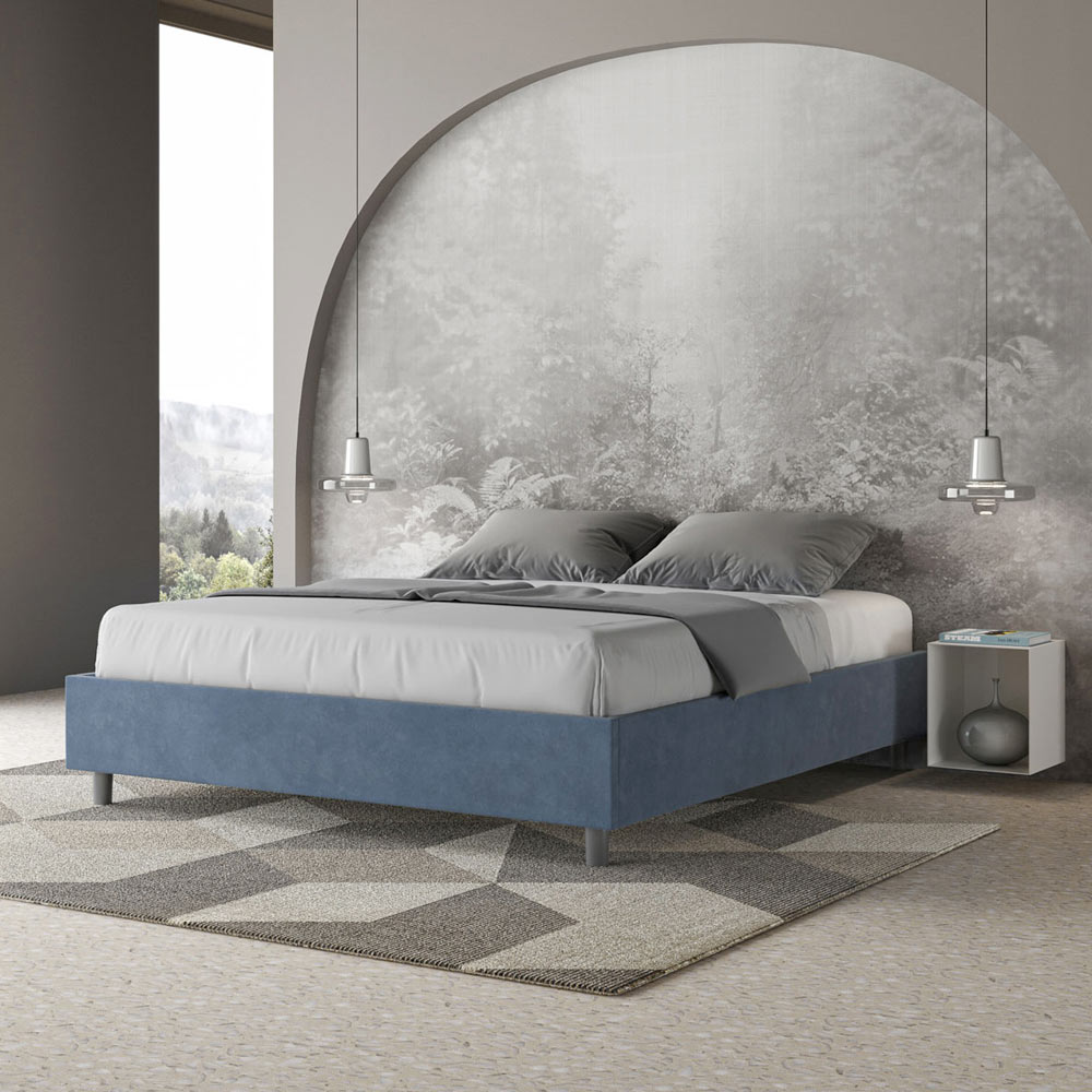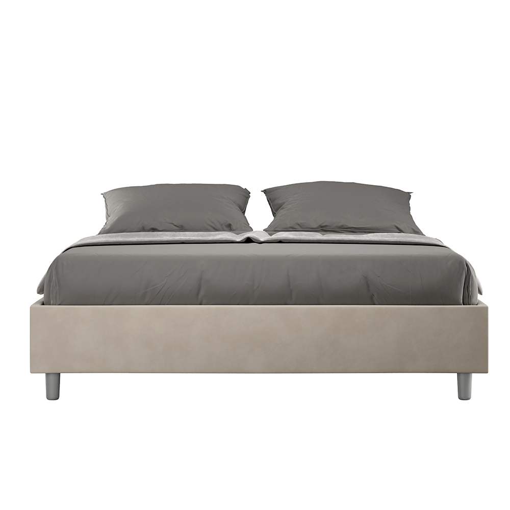 Gepolstertes Doppelbett (160 x 200 cm) aus Spanplatten mit Mikrofaserbezug , vollständig Made in Italy. Dieses Doppelbett besticht durch sein klares, minimalistisches Design . Seine zurückhaltende Ästhetik und Vielseitigkeit ermöglichen eine mühelose Integration in jedes Ambiente. Ein besonderes Merkmal ist das Fehlen eines traditionellen Kopfteils . Dadurch eignet es sich ideal für die Platzierung an ungewöhnlichen Orten, beispielsweise unter einem Fenster, im Dachgeschoss oder in der Nähe einer dekorativen Wand, ohne die Aussicht zu beeinträchtigen oder den gewünschten Effekt zu erzielen.