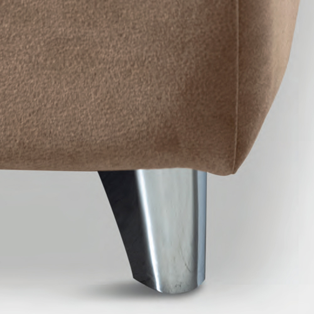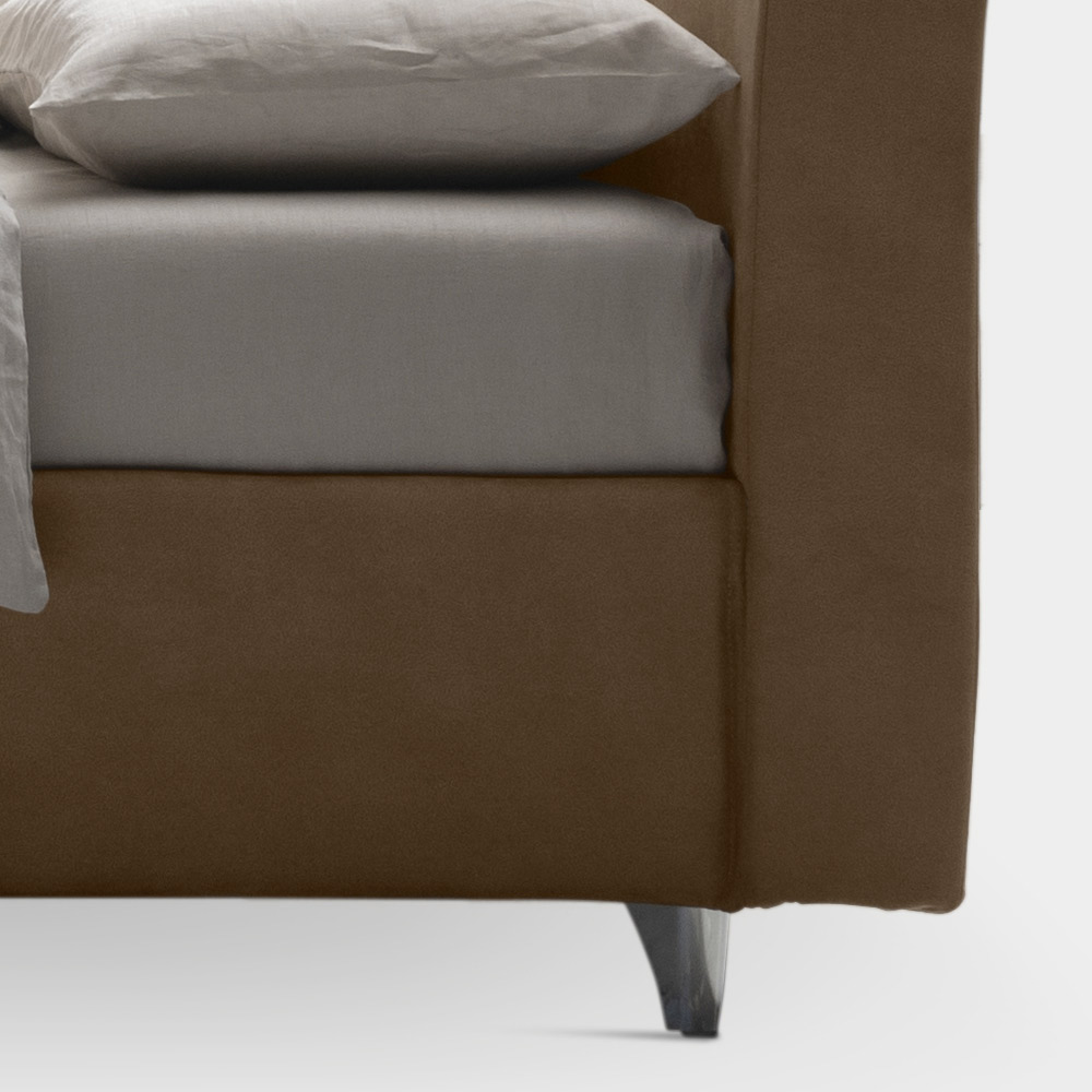 Doppelbett mit dynamischem Untergestell , Aufbewahrungsbox,Metallfüßen mit poliertem Stahlfinish (Höhe 10 cm) und geschwungenem Kopfteil von beträchtlicher Dicke, das das Bett zum Protagonisten geräumiger und raffinierter Umgebungen macht. Die Verarbeitung, die durch erhabene und kontrastierende Nähte in der Mitte des Kopfteils gekennzeichnet ist, verleiht dem Produkt aus schmutzabweisendem Stoff einen Hauch von Schneiderei. Dieses Bett ist der Inbegriff von Komfort und modernem Design. Es ist eine perfekte Kombination aus Raffinesse und Funktionalität und wurde entwickelt, um Nächte purer Entspannung und unvergleichlichen Stil zu bieten.