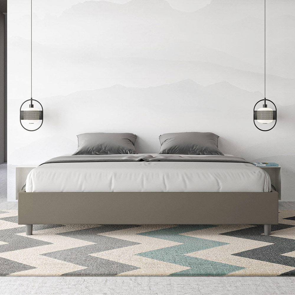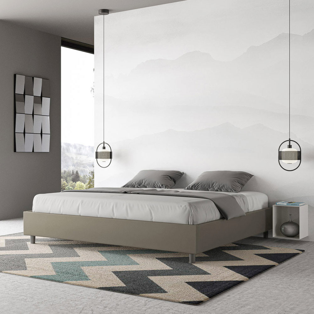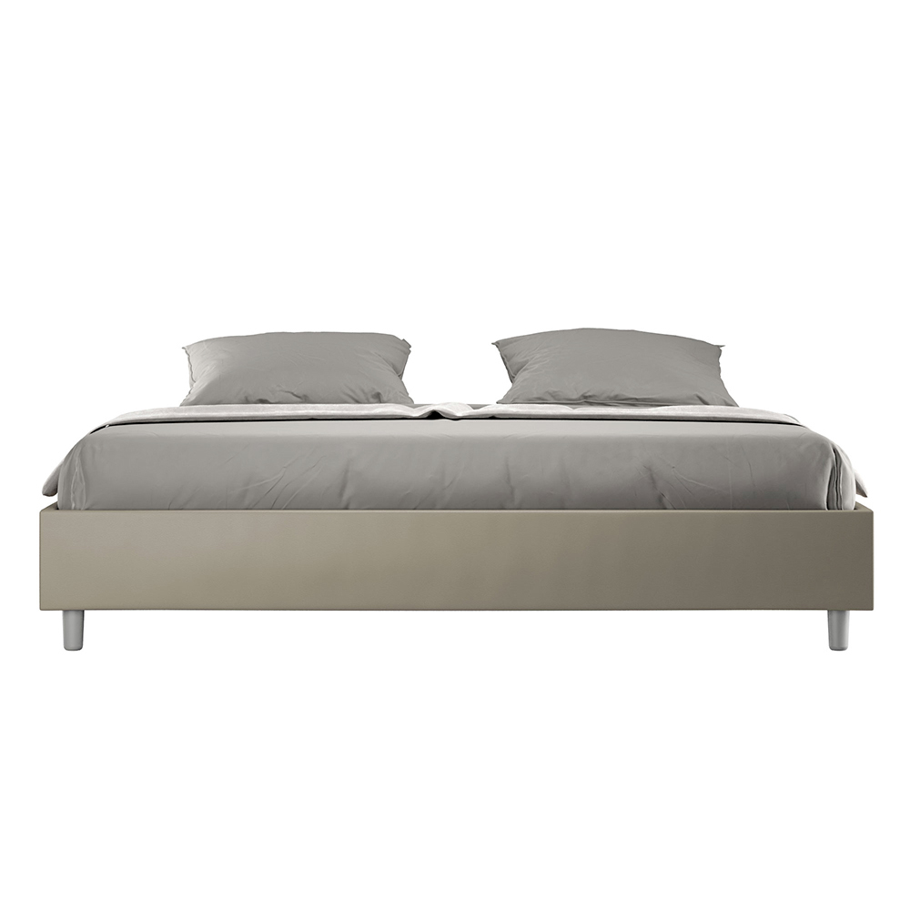 Kingsize-Bett 180x200 cm, gepolstert aus Melaminplatten und mit Kunstleder bezogen, vollständig in Italien hergestellt. Dieses Kingsize-Bett besticht durch sein klares, minimalistisches Design . Seine zurückhaltende Ästhetik und Vielseitigkeit ermöglichen eine mühelose Integration in jedes Ambiente. Ein besonderes Merkmal ist das Fehlen eines traditionellen Kopfteils . Dadurch eignet es sich ideal für die Platzierung an ungewöhnlichen Orten, beispielsweise unter einem Fenster, im Dachgeschoss oder in der Nähe einer dekorativen Wand, ohne die Aussicht zu beeinträchtigen oder den gewünschten Effekt zu erzielen.