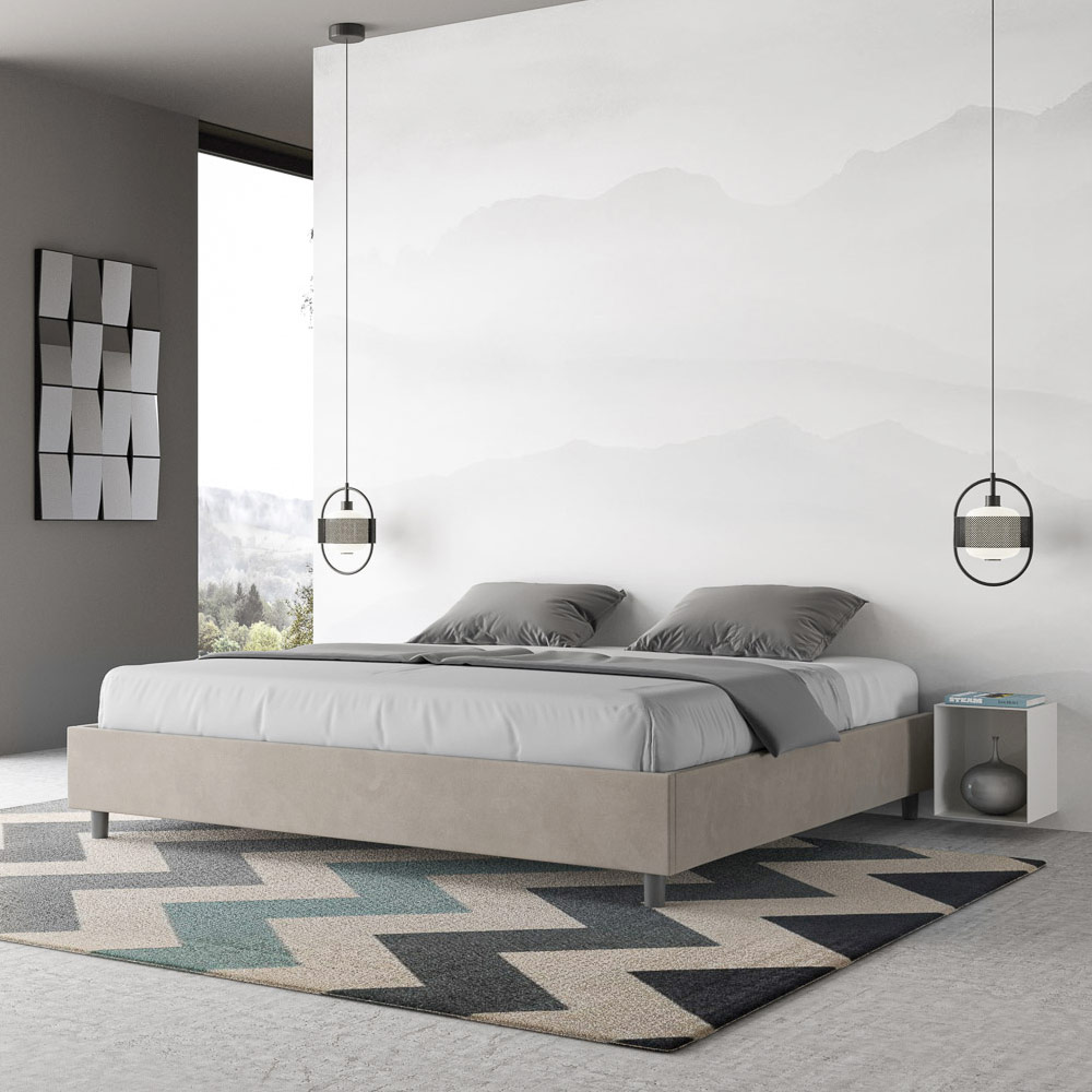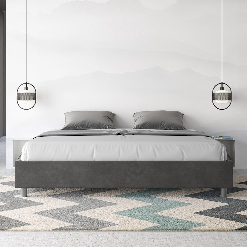 Kingsize-Bett 190x200 cm, gepolstert aus Melaminplatten und mit Mikrofaser bezogen, vollständig in Italien hergestellt. Dieses Kingsize-Bett besticht durch sein klares, minimalistisches Design . Seine zurückhaltende Ästhetik und Vielseitigkeit ermöglichen eine mühelose Integration in jedes Ambiente. Ein besonderes Merkmal ist das Fehlen eines traditionellen Kopfteils . Dadurch eignet es sich ideal für die Platzierung an ungewöhnlichen Orten, beispielsweise unter einem Fenster, im Dachgeschoss oder in der Nähe einer dekorativen Wand, ohne die Aussicht zu beeinträchtigen oder den gewünschten Effekt zu erzielen.
