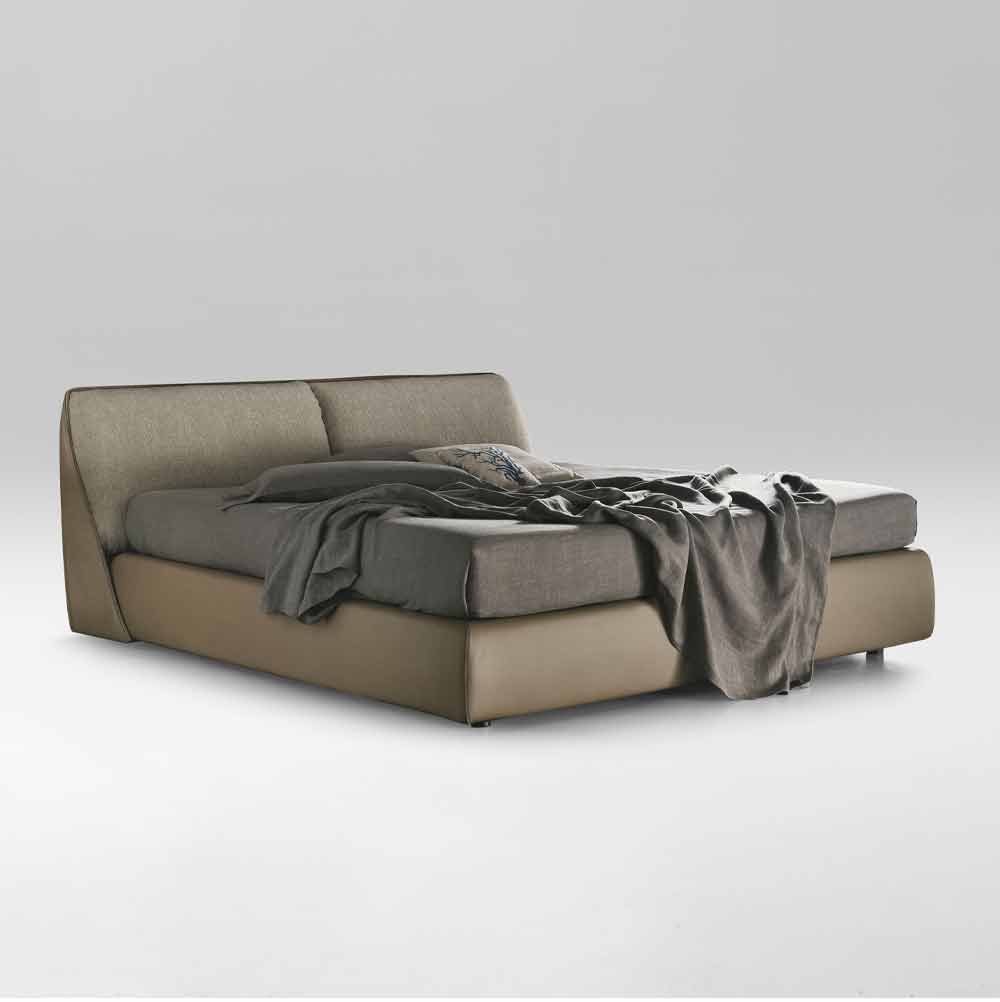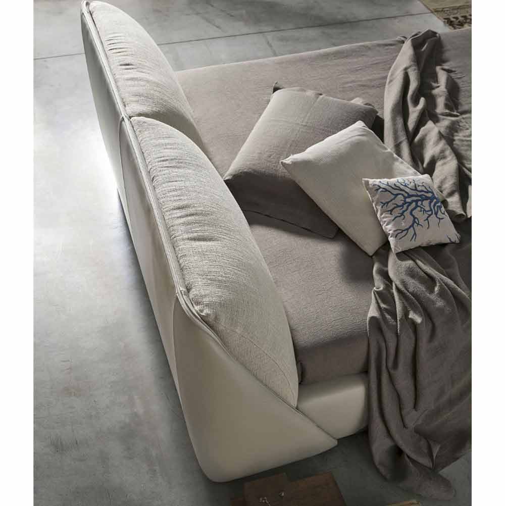 Doppelbett gepolstert und bezogen mit Stoff und Leder, hergestellt in Italien – Lula