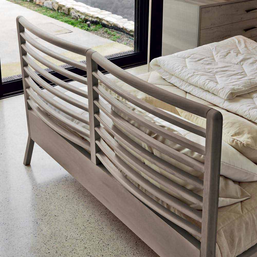 Bei dieser Lösung bietet das harmonischste Bett ein gepolstertes Kopfteil mit Nähten, die vertikale Linien nachzeichnen. Unverzichtbar und elegant, besteht es aus mit Öl veredelter massiver Walnuss, die in raffiniertesten Einrichtungskontexten eingesetzt werden kann.