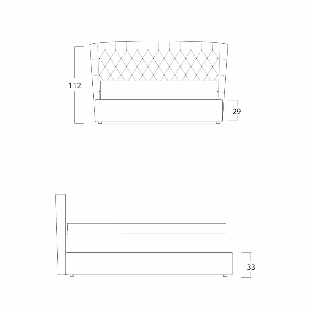 Designer Doppelbett mit gestepptem Kopfteil Selene von Bolzan Das Doppelbett Selene hat ein klassisches Design, das in einem modernen Stil neu interpretiert wurde. Es ist ein Bett mit einfachen Formen, das jedoch in der Lage ist, jede Art von Umgebung glamourös zu machen und gleichzeitig eine Prise Fröhlichkeit und Unbefangenheit zu vermitteln. Das Kopfteil ist in Capitonné-Verarbeitung ausgeführt und nicht abnehmbar. Die Struktur besteht aus Tannenholzleisten mit natürlicher Innenoberfläche H 29 cm und ist mit Polyurethanschaum ohne Fluorchlorkohlenwasserstoffe gemäß UNI-Normen überzogen und mit lichtbeständigem Velfodera ausgekleidet. Das Bett wird mit einem Lattenrost mit Metallstruktur geliefert, gebogener Rahmen mit 50x37 mm Profil, lackiert mit Epoxidpulver. Normaler orthopädischer Lattenrost, 15 Latten aus gebogenem Buchensperrholz 68x8 mm pro Bett. Standard-Vasenfüße, H 4 Zentimeter.