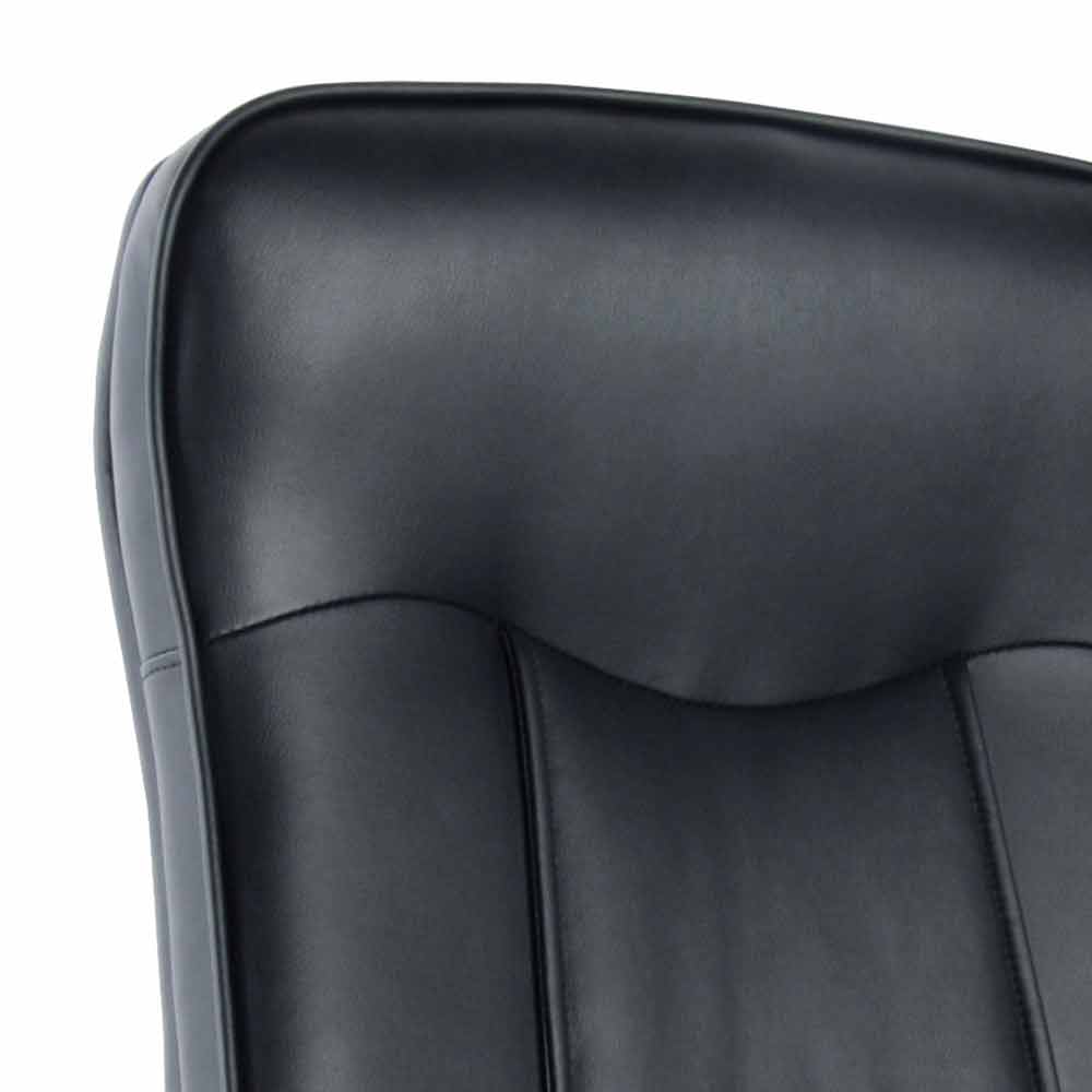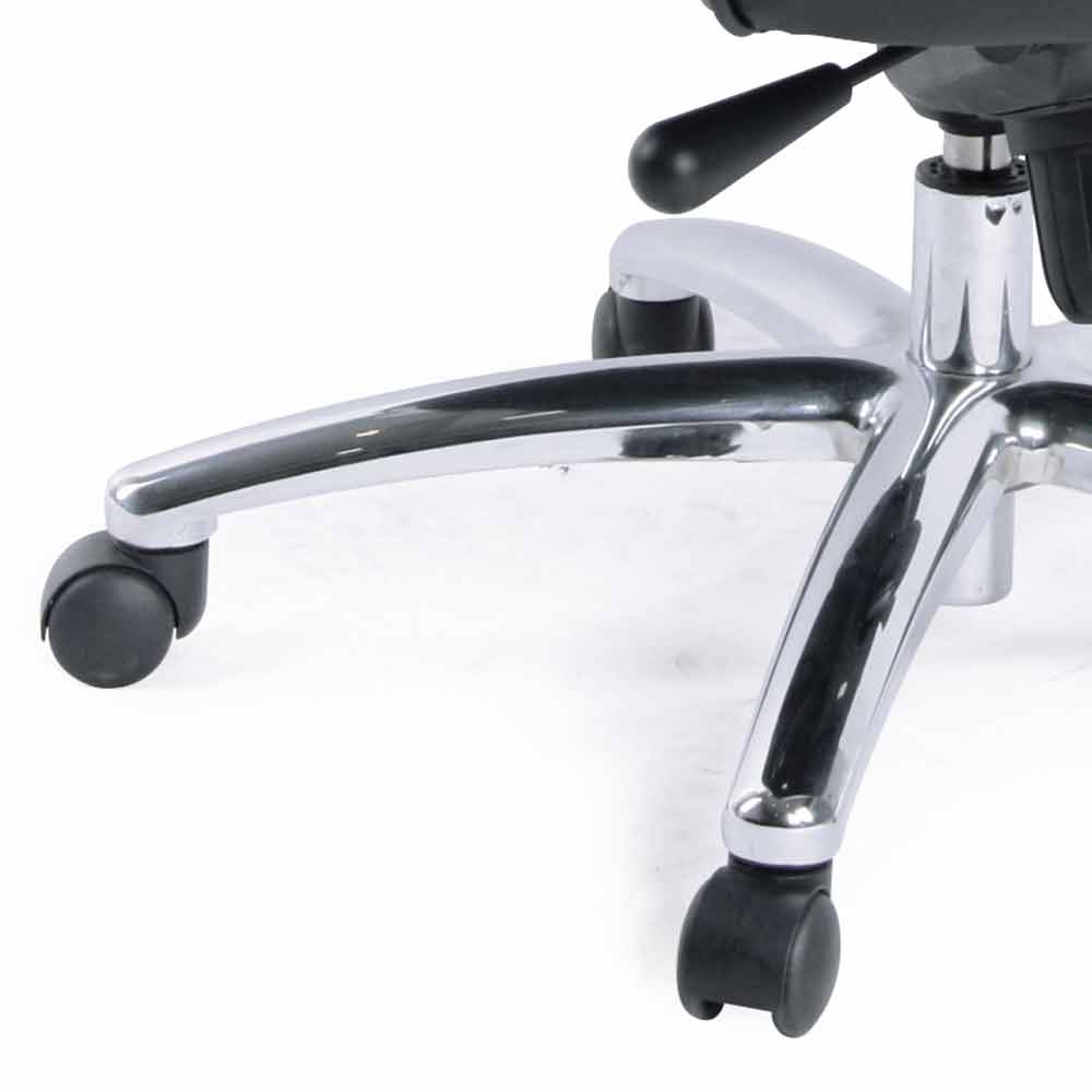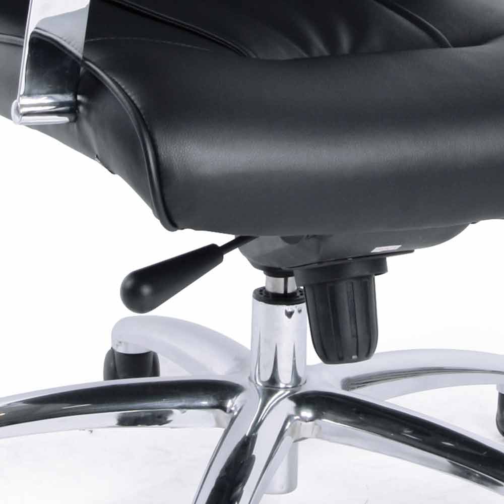 Der Virone- Bürostuhl ist mit einem Drehsitz mit Gasfeder, einer mit schwarzem Kunstleder bezogenen Rückenlehne und schwarzen Ledersitzen ausgestattet. verchromter Metallrahmen mit Rädern . Das Element, das Virone zum Protagonisten Ihrer Räume macht, ist der Kippmechanismus, bei dem Armlehnen, Sitz und Rückenlehne aus einem Stück bestehen. Wenn die Rückenlehne gestützt ist, kippt der gesamte Stuhl, sodass es nicht möglich ist, die verschiedenen Komponenten unabhängig voneinander zu bewegen.