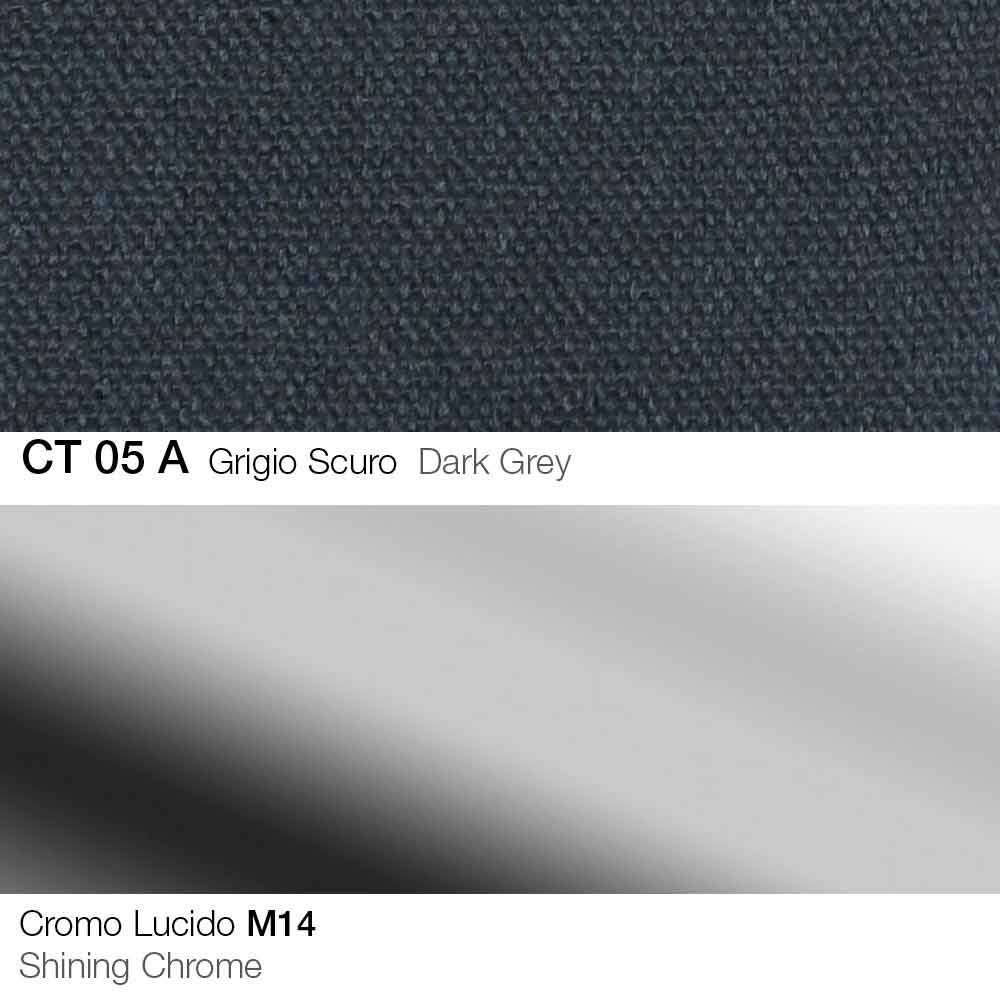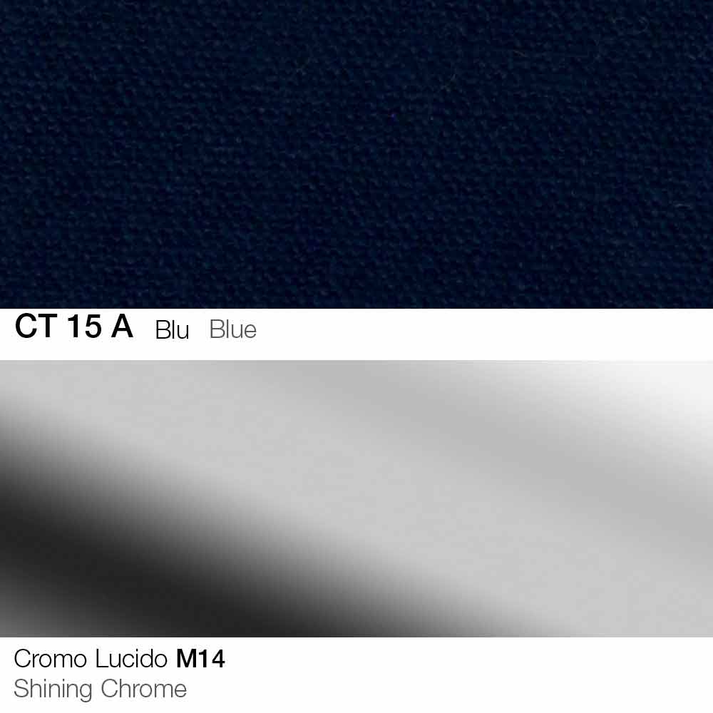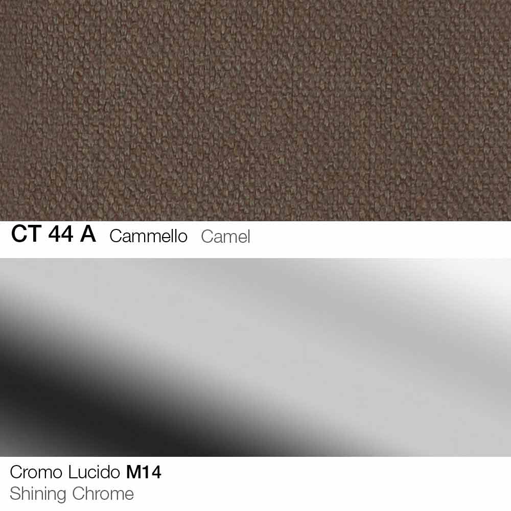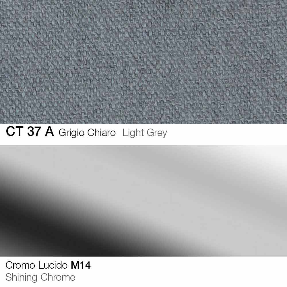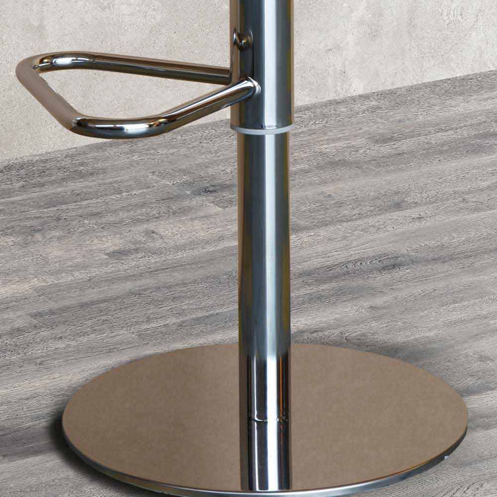 Drehhocker aus Stoff mit Gestell aus verchromtem Stahl Made in Italy.