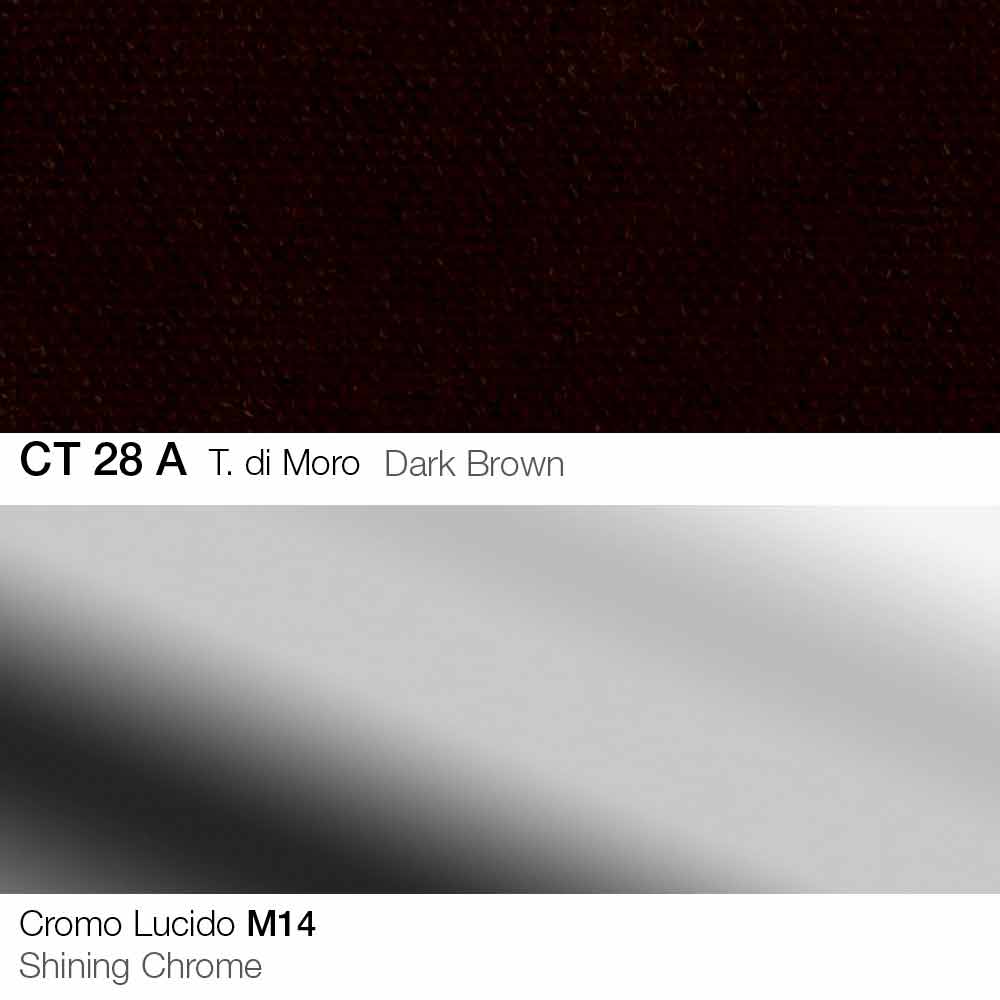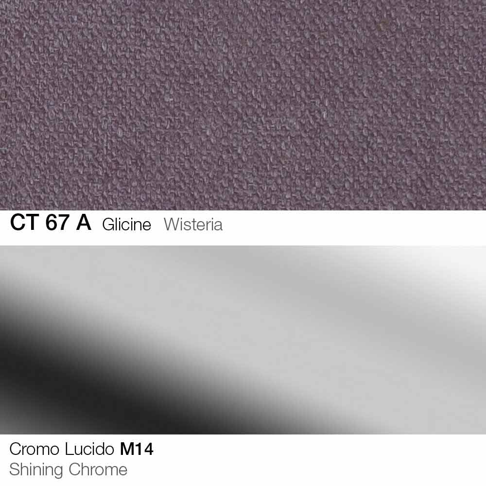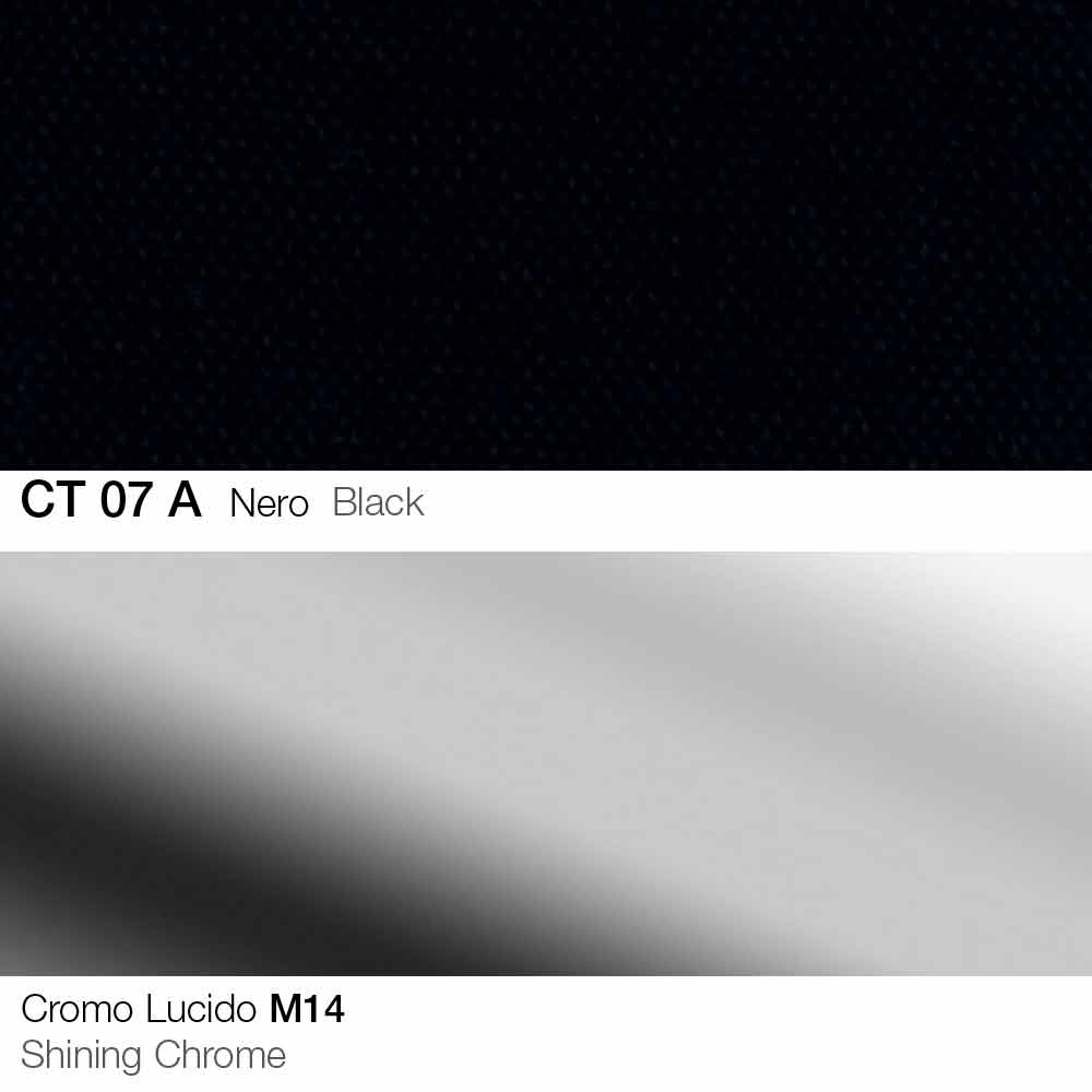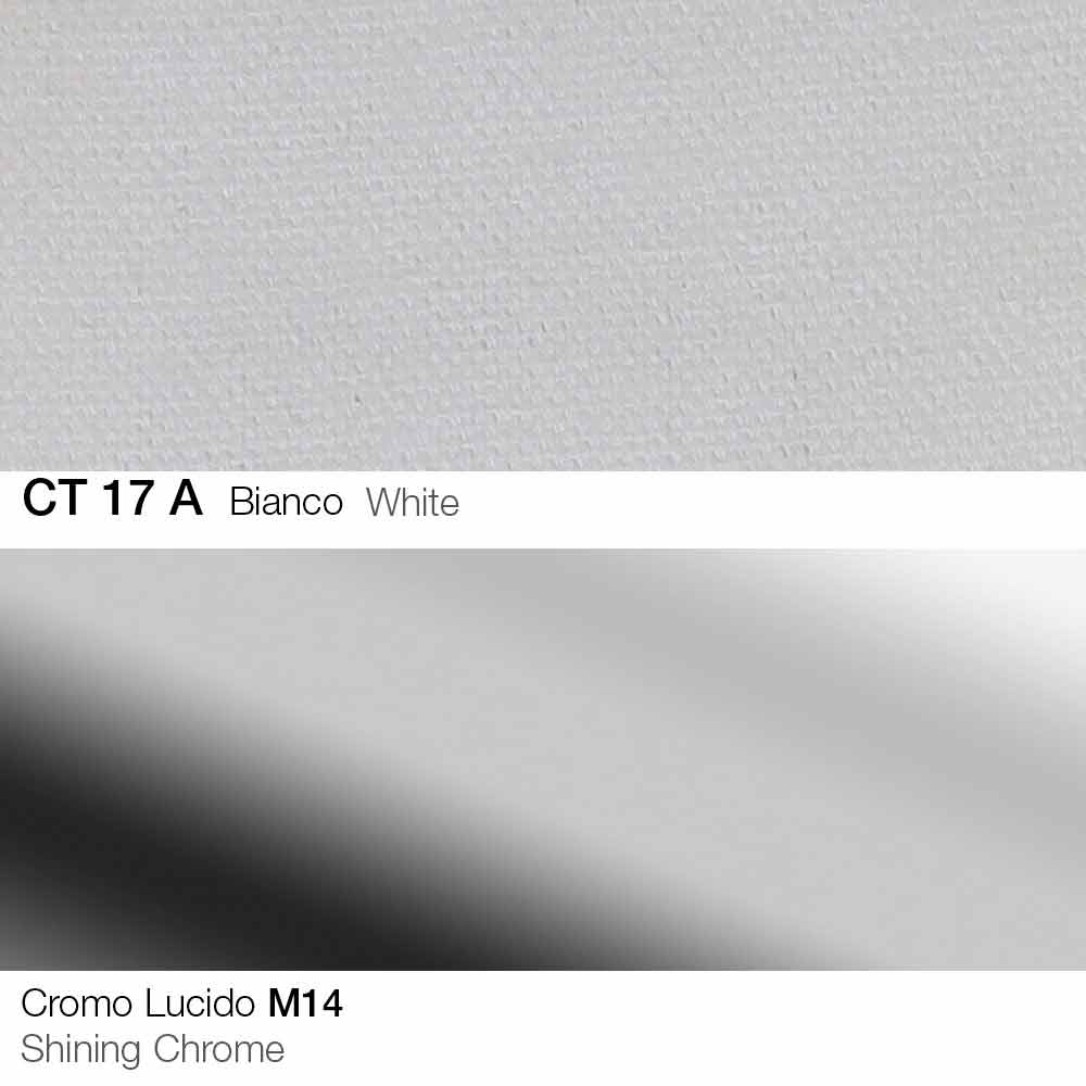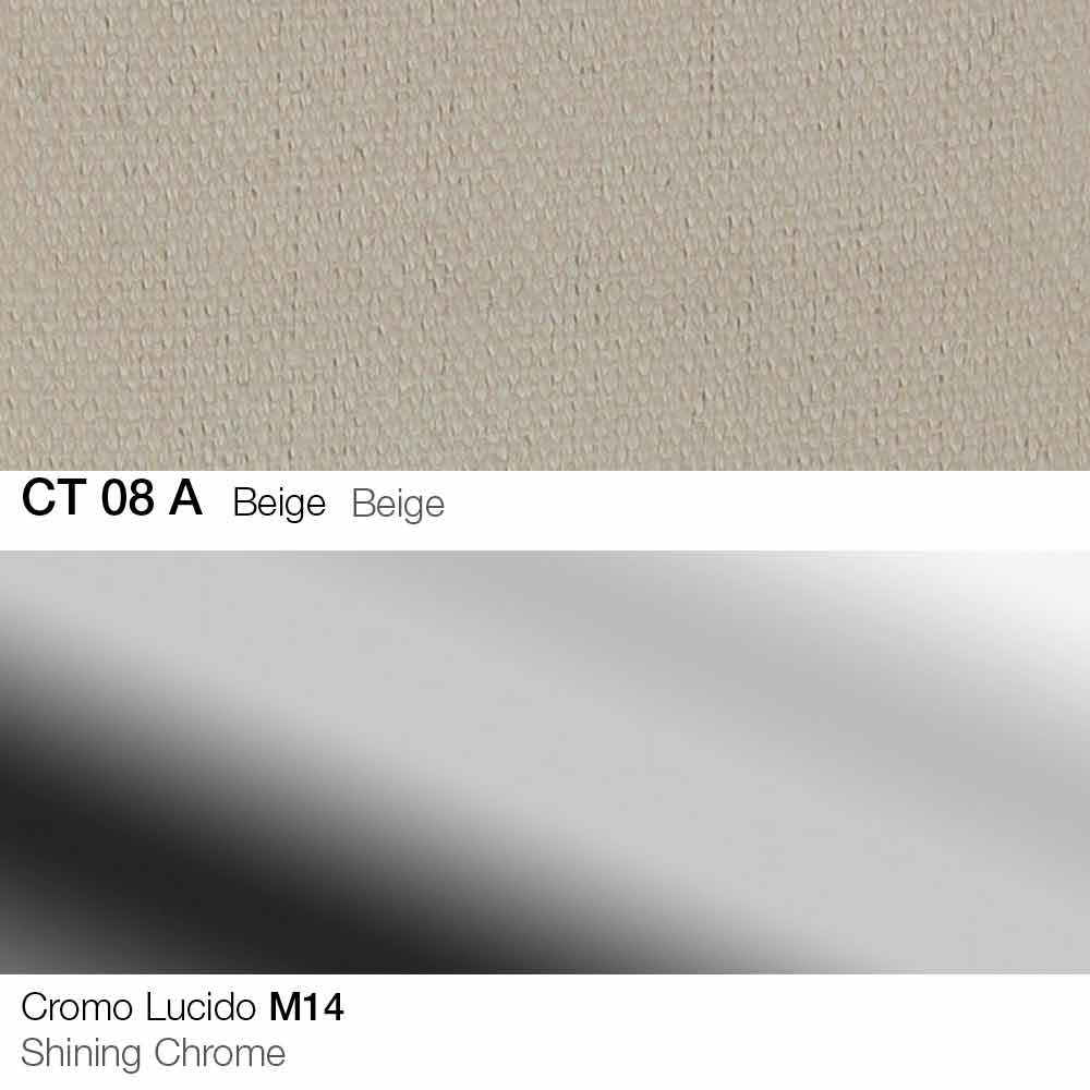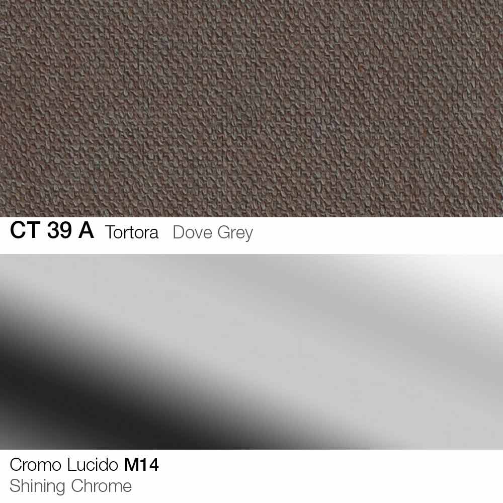 Drehhocker aus Stoff mit Gestell aus verchromtem Stahl Made in Italy.