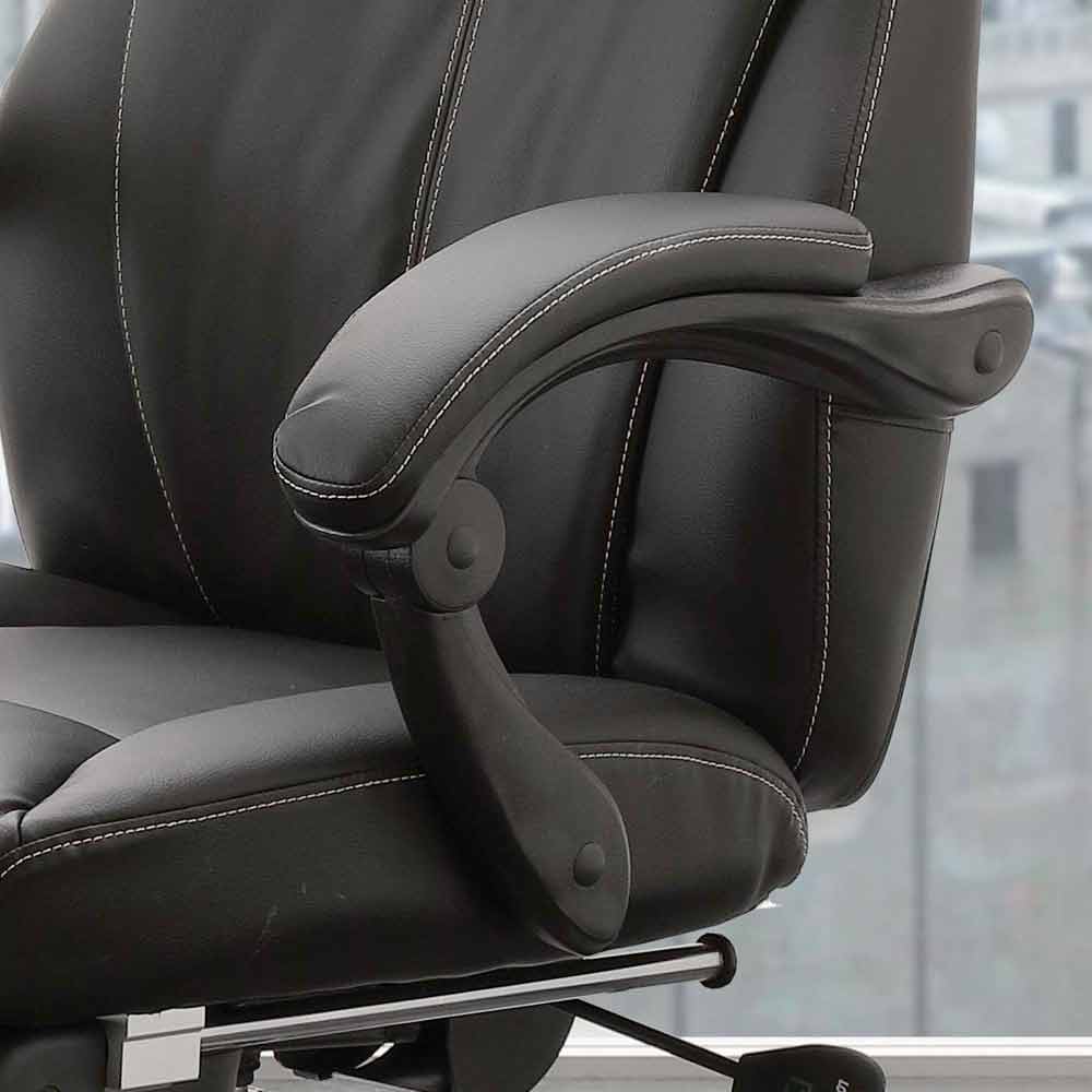 Moderner Chefsessel, verstellbar und drehbar aus schwarzem und metallischem Kunstleder.