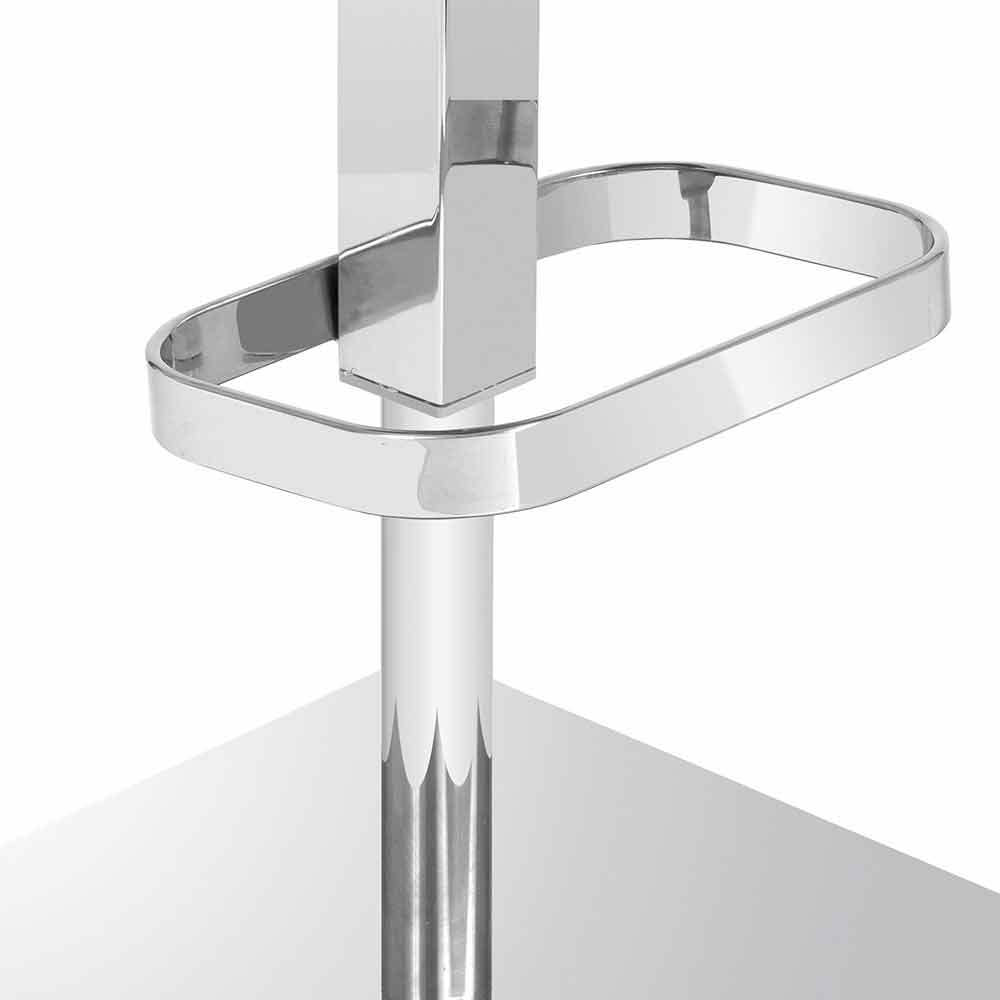 - Vierkantfuß in Chromoptik und Sitzbezug in grauem Kunstleder (feuerfestes Material Klasse 1 IM, beständig gegen Reibung und Verschleiß)