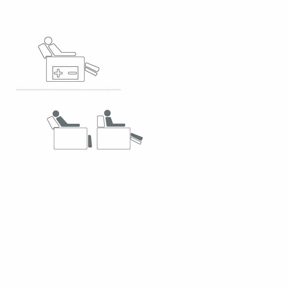 TV-Position oder lesen : die Rückenlehne bleibt in der Position, um den Sitz zu verüben und das Trittbrett öffnet sich, um Komfort in den Beinen zu gewährleisten.