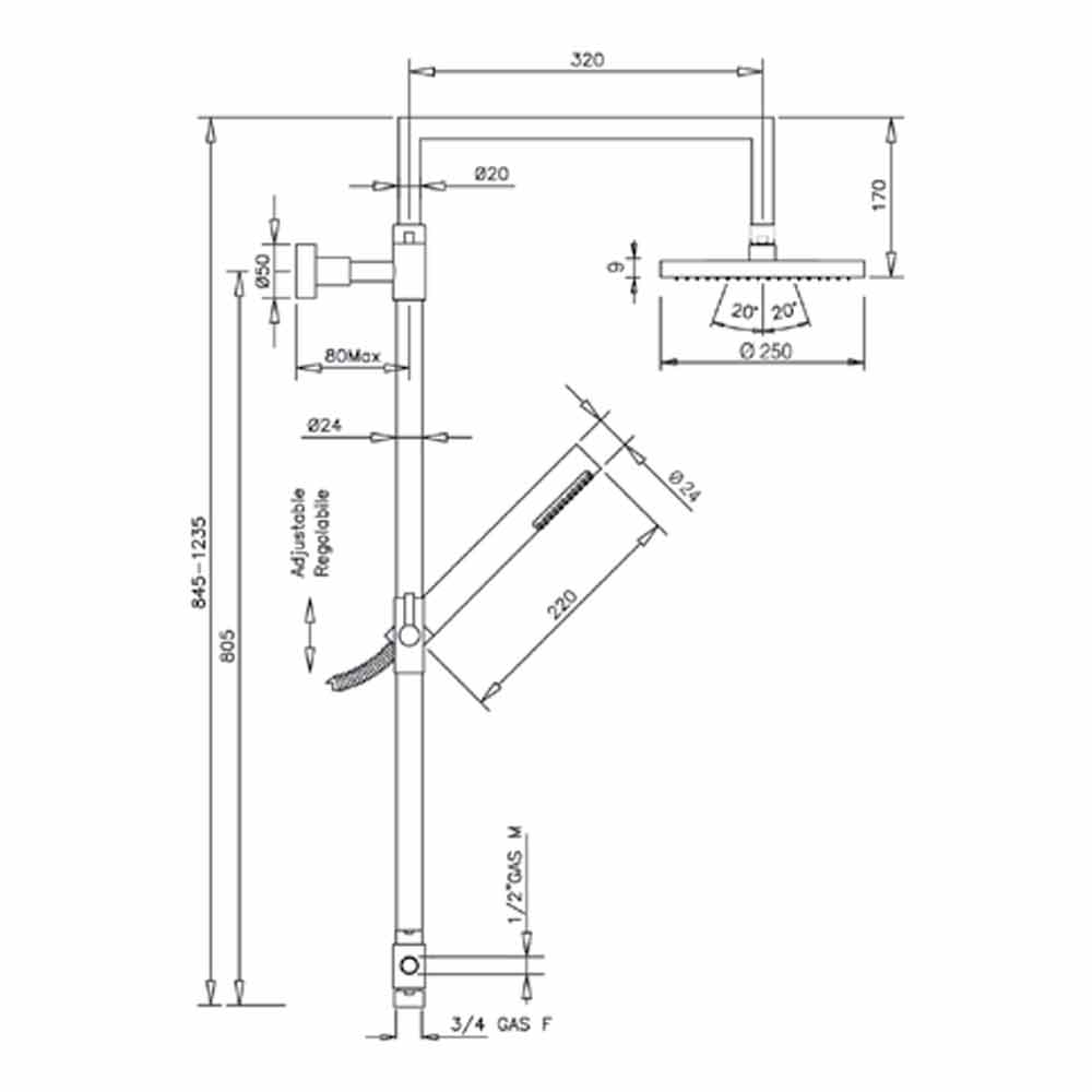 Wenn Sie Ihr Badezimmer mit dieser wertvollen Duschsäule aus Messing ausstatten, können Sie sich angenehme Momente der Entspannung gönnen, die ideal sind, um die im Laufe des Tages angesammelte Anspannung und den Stress abzubauen. Dieser Artikel kombiniert ästhetische Merkmale wie das Design mit Liebe zum kleinsten Detail mit funktionalen Merkmalen, die für hochwertige Badezimmermöbel unerlässlich sind. Alles kombiniert mit einer Produktion Made in Italy .
