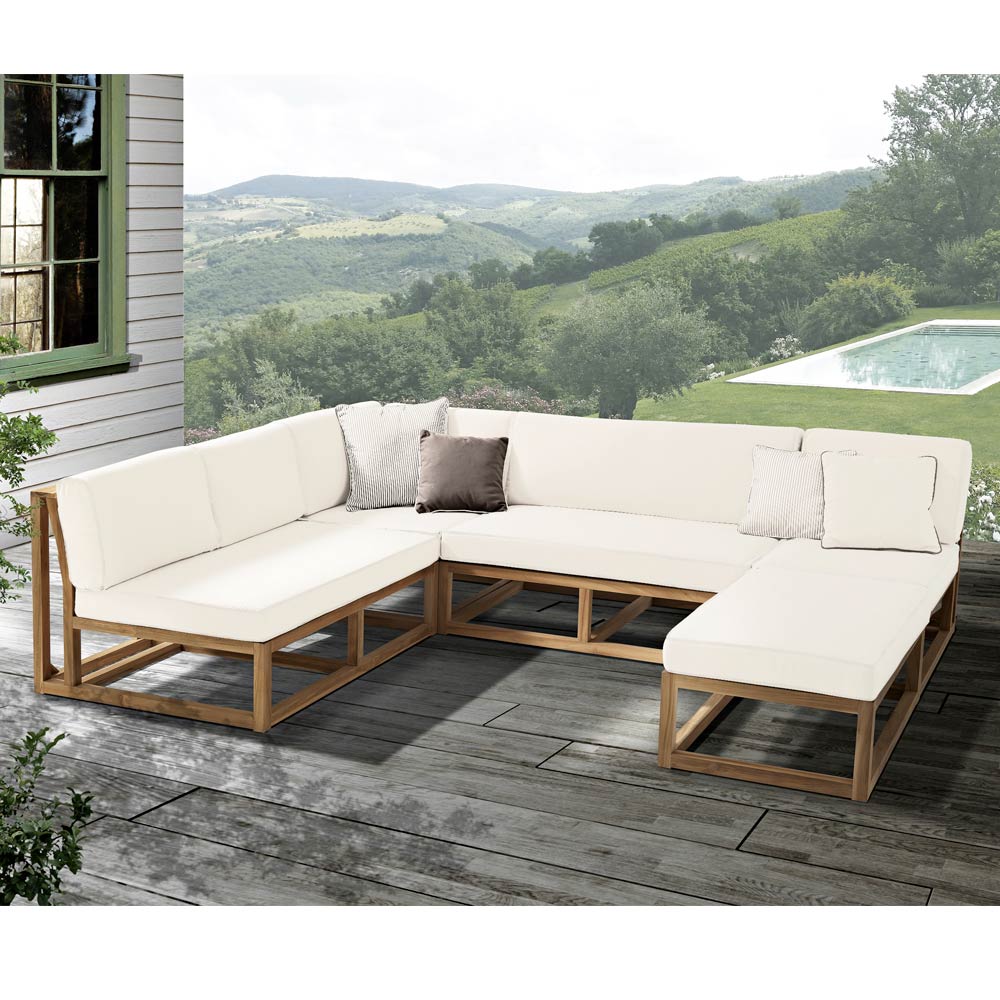 Eck-Gartensessel aus natürlichem Teakholz und Kissen