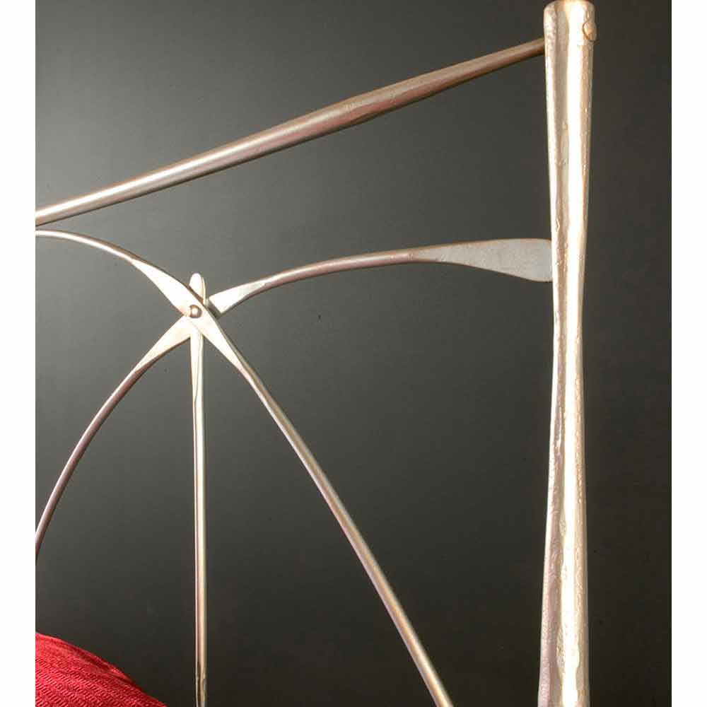 Das Bett aus Schmiedeeisen, in der Variante  Kopfteil mit Bettgestell sieht den Einbau von einem Lattenrost 120 x 190 vor, das direkt auf das Bettgestell hinein gelegt wird. .Für den Fall, dass Schönheitsveränderungen vorgenommen werden möchten. Dieses Modell kann dank seiner handwerklichen Herstellung, in der Höhe, Länge und Breite verändert werden.
