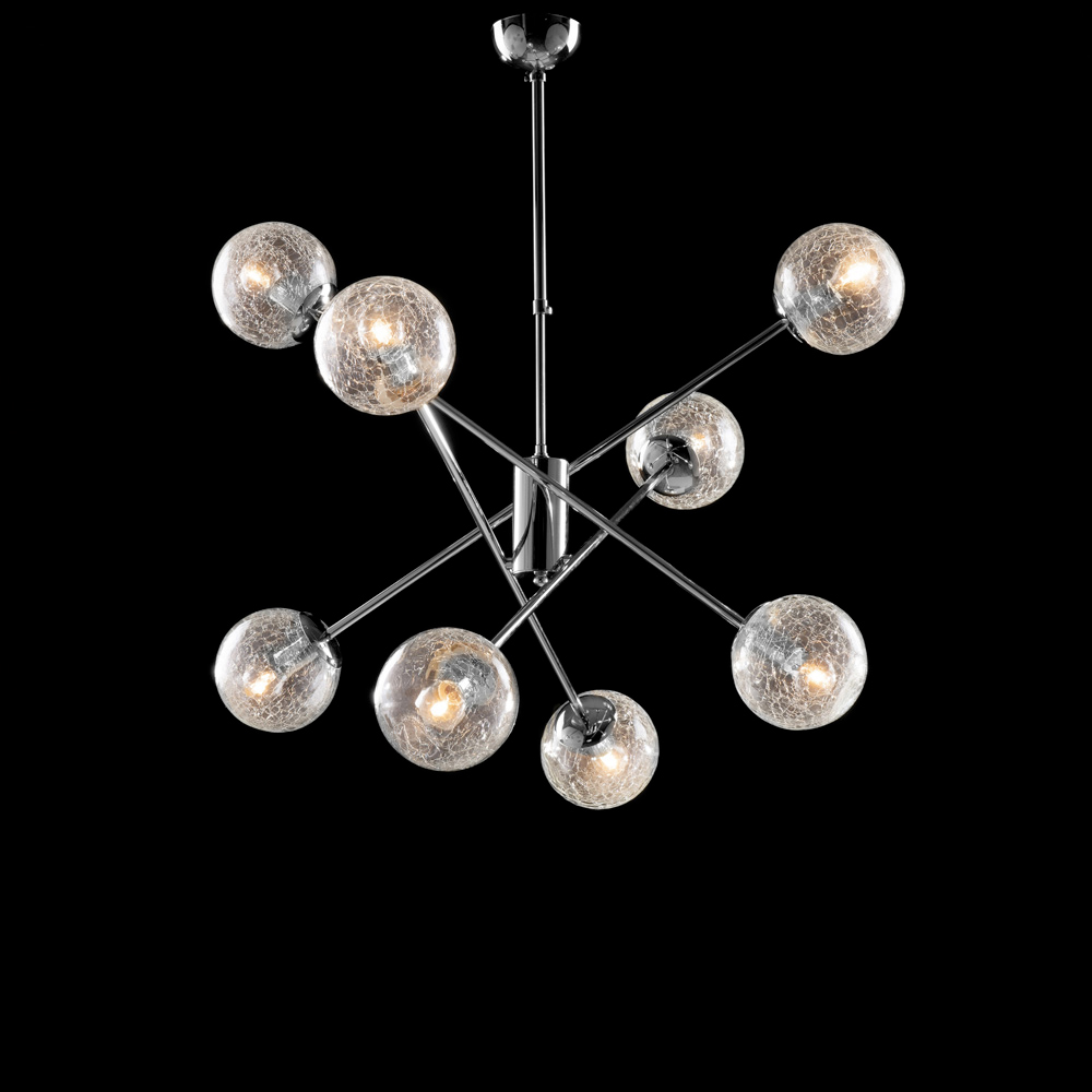 Handgefertigte Pendelleuchte aus poliertem Chromeisen – 6 oder 8 Leuchten | Hergestellt in Italien