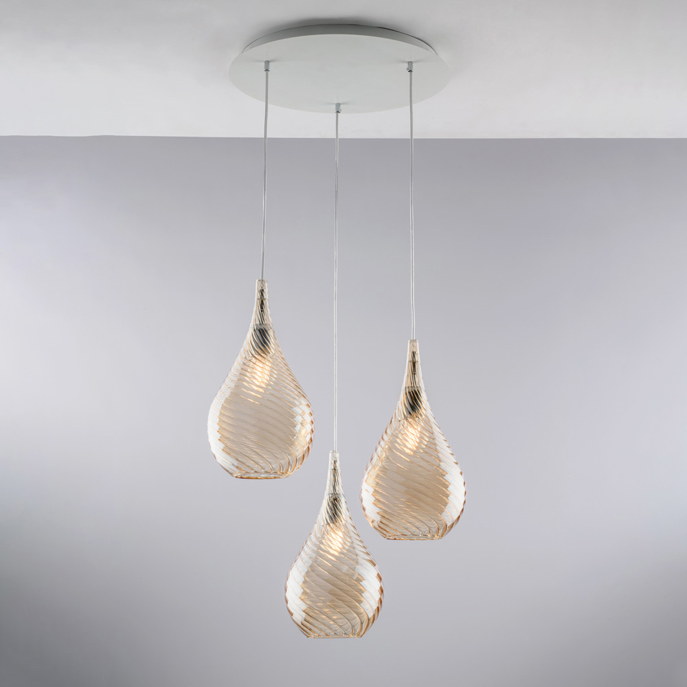 Diese Pendelleuchte ist in den Ausführungen Transparent , Bernstein oder Grau erhältlich und ermöglicht es Ihnen, Ihren Raum ganz nach Ihrem Geschmack zu gestalten: hell und lichtdurchflutet in der transparenten Variante, warm und behaglich in Bernstein oder elegant und modern in Grau. Sie eignet sich perfekt für Wohnzimmer, Esszimmer, Kücheninseln, offene Wohnbereiche und exklusive Objekträume und verkörpert Luxus auf minimalistische Weise.