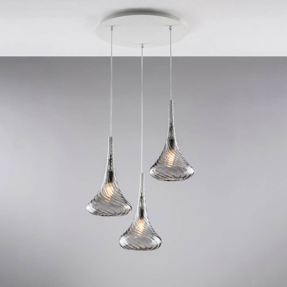 Diese Pendelleuchte ist in den Ausführungen Transparent , Bernstein oder Grau erhältlich und ermöglicht es Ihnen, die Atmosphäre Ihres Raumes individuell zu gestalten: hell und luftig in der transparenten Variante, warm und einladend in Bernstein oder elegant und modern in Grau. Sie eignet sich ideal für Wohnzimmer , Esszimmer , Kücheninseln , offene Wohnbereiche und exklusive Objekträume .