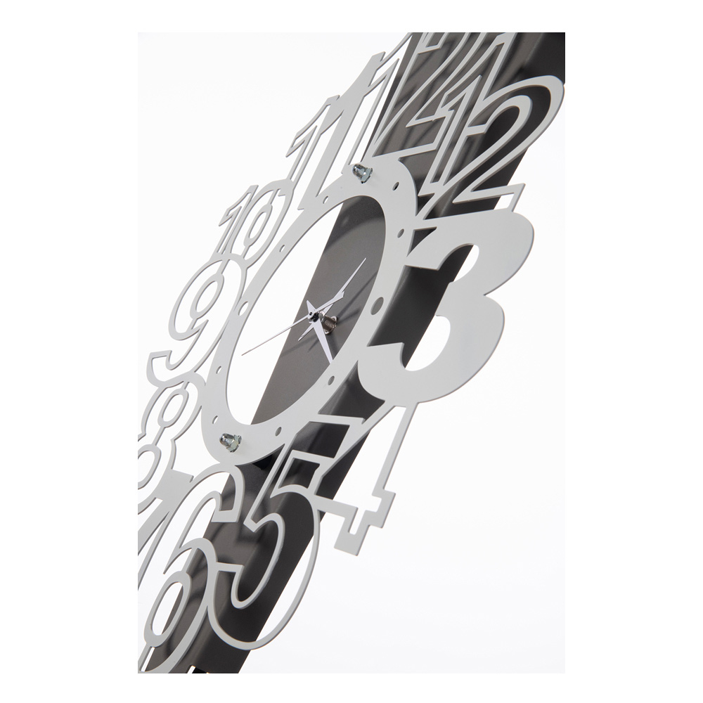Uhr komplett aus Eisen mit 3 Zeigern, hergestellt in Italien. Dieser Artikel mit einem einzigartigen Design, das der Form eines Ausrufezeichens ähnelt, vereint Kreativität und Funktionalität. Das transparente Zifferblatt bildet einen attraktiven Kontrast mit der besonderen Ausrufezeichenform auf der Rückseite und verleiht der Umgebung einen Hauch von Originalität und Stil . Es ist eine mutige Entscheidung, den Raum einzigartig und ausdrucksstark zu gestalten, der sofort die Aufmerksamkeit des Betrachters auf sich zieht.