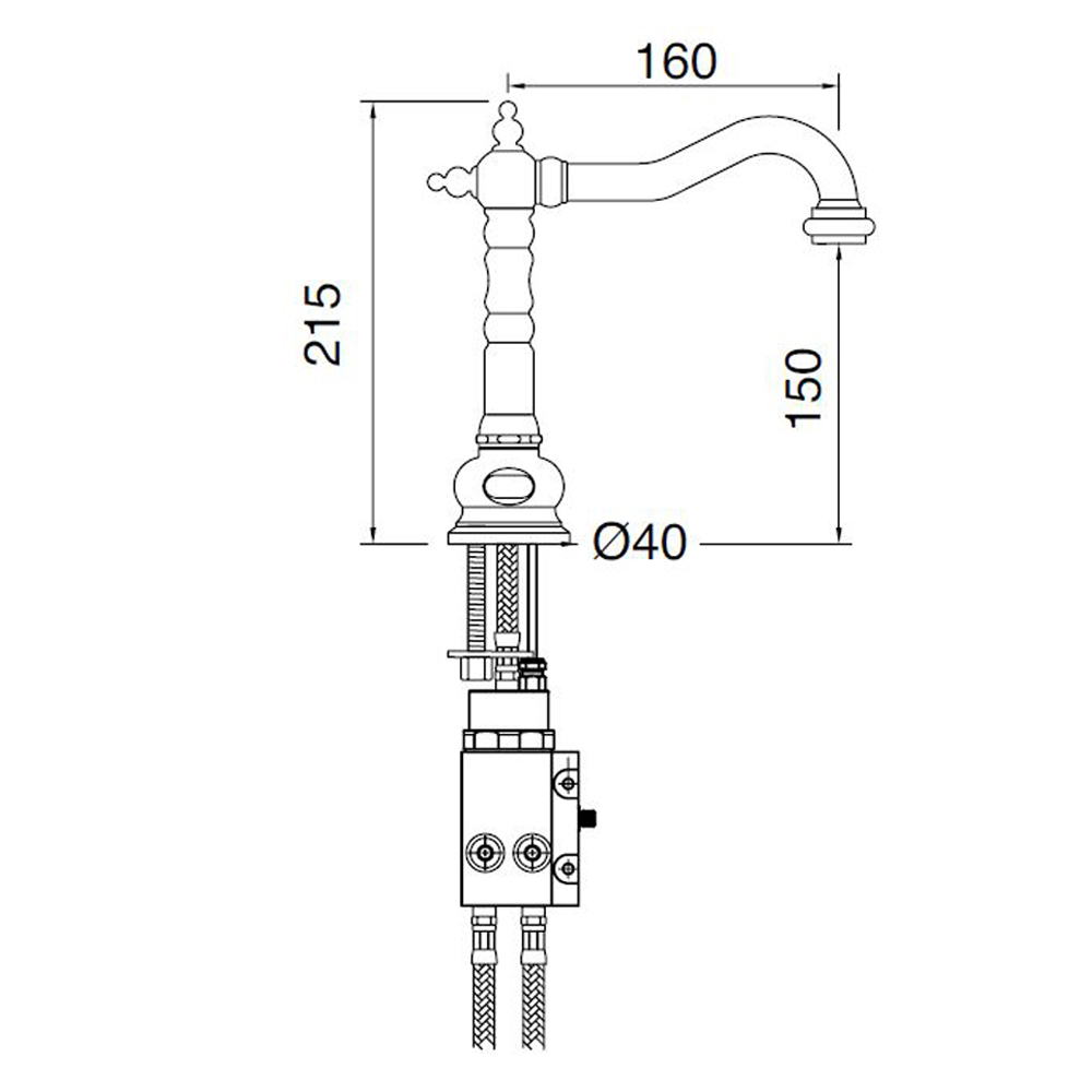 Diese raffinierte elektronische Einloch-Waschtischarmatur mit Abfluss è ist vollständig handgefertigt von erfahrenen Handwerkern aus schwerem Messing, in Formen gegossen, die die handwerklichen Systeme der Vergangenheit respektieren und mit einer dicken Lackschicht geschützt, die in verschiedenen Farben erhältlich ist. Dies ist ein elektronischer Wasserhahn, der von einer Photozelle gesteuert wird. Wenn man die Hand vor die Fotozelle hält, wird der Impuls zum Öffnen des Wasserflussventils ausgelöst. Das Entfernen der Hand nach einer Mindestzeit erzeugt den entgegengesetzten Impuls. Wassermischung è automatisch und kannò durch Register eingestellt werden, die in der Box, die unter dem Becken bleibt, die die Funktion der "Steuereinheit" des Wasserhahns hat. .