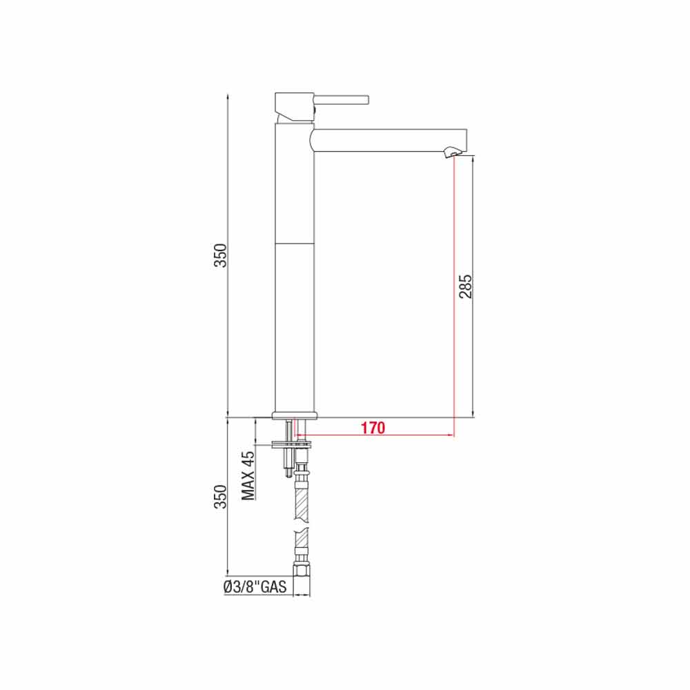 Maßnahme : H 285 mm (Gesamthöhe 350 mm)
