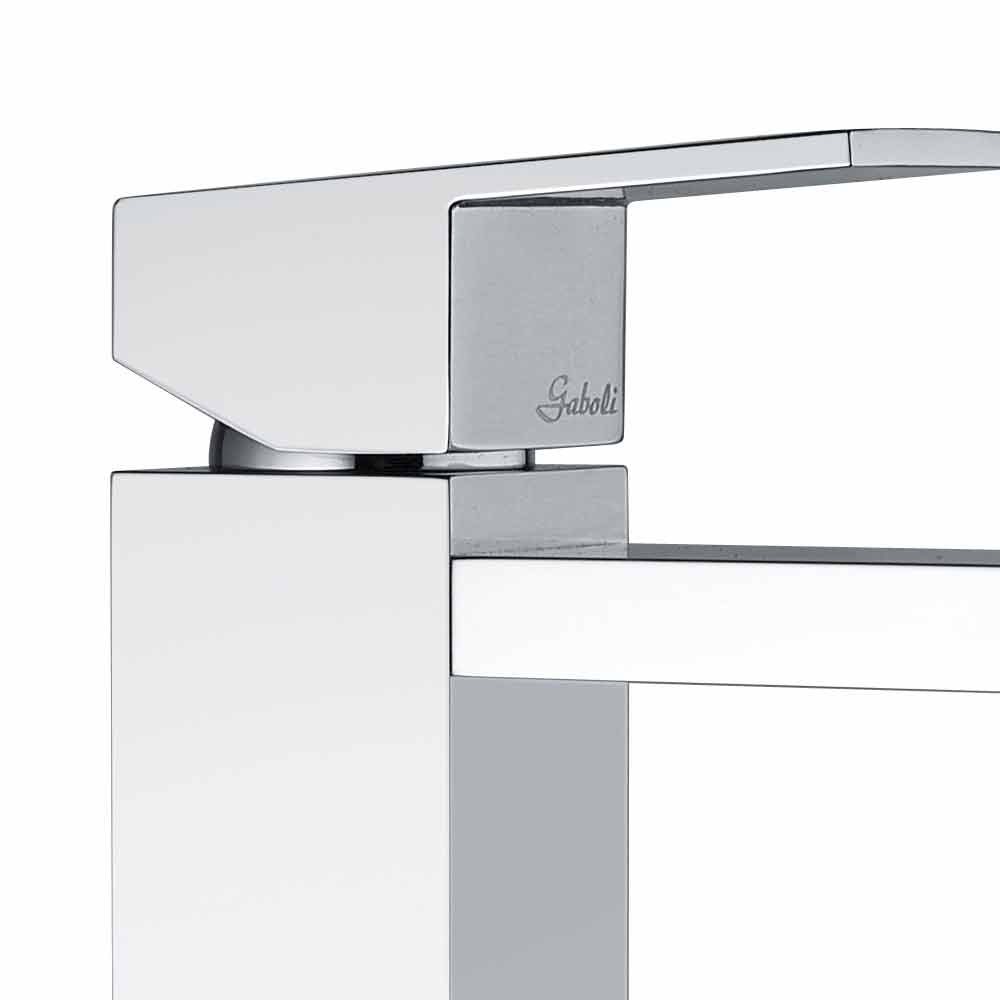Erweiterter Mischer ohne Abfall für Waschbecken aus verchromtem Messing mit offener Kerox Ø 25 mm Patrone. Quadratische Linien und klar definierte Winkel verleihen dem Produkt und dem gesamten Raum eine äußerst moderne und raffinierte Note und bereichern es mit Stil und einem völlig neuen Geschmack. Seine Einfachheit und die wundervolle Chromoberfläche ermöglichen es, dass dieser Wasserhahn auf einwandfreie Weise Teil eines jeden Dekors wird, was zu einem diskreten und eleganten Ergebnis führt.