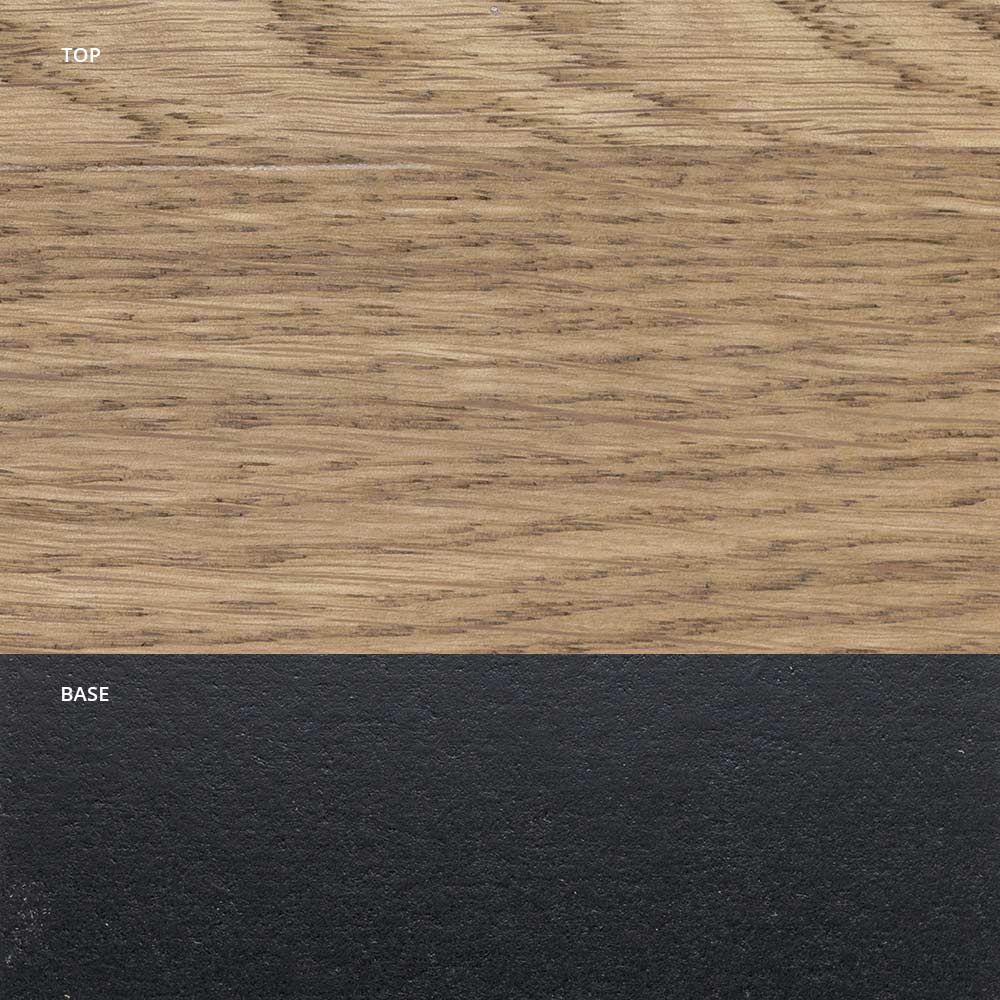 mit brauner, massiver Asteiche furniert und die Basis aus